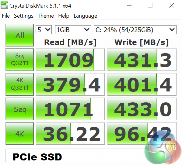 Interesting results here: the ‘read' speeds are quite high at around 1700 MB/s, but ‘write' speeds of around 430 MB/s are comparatively slow, especially for a PCIe drive. This should not make much difference to most consumers, as the XPS 13 is not aimed at those likely to be writing large files on a regular basis.