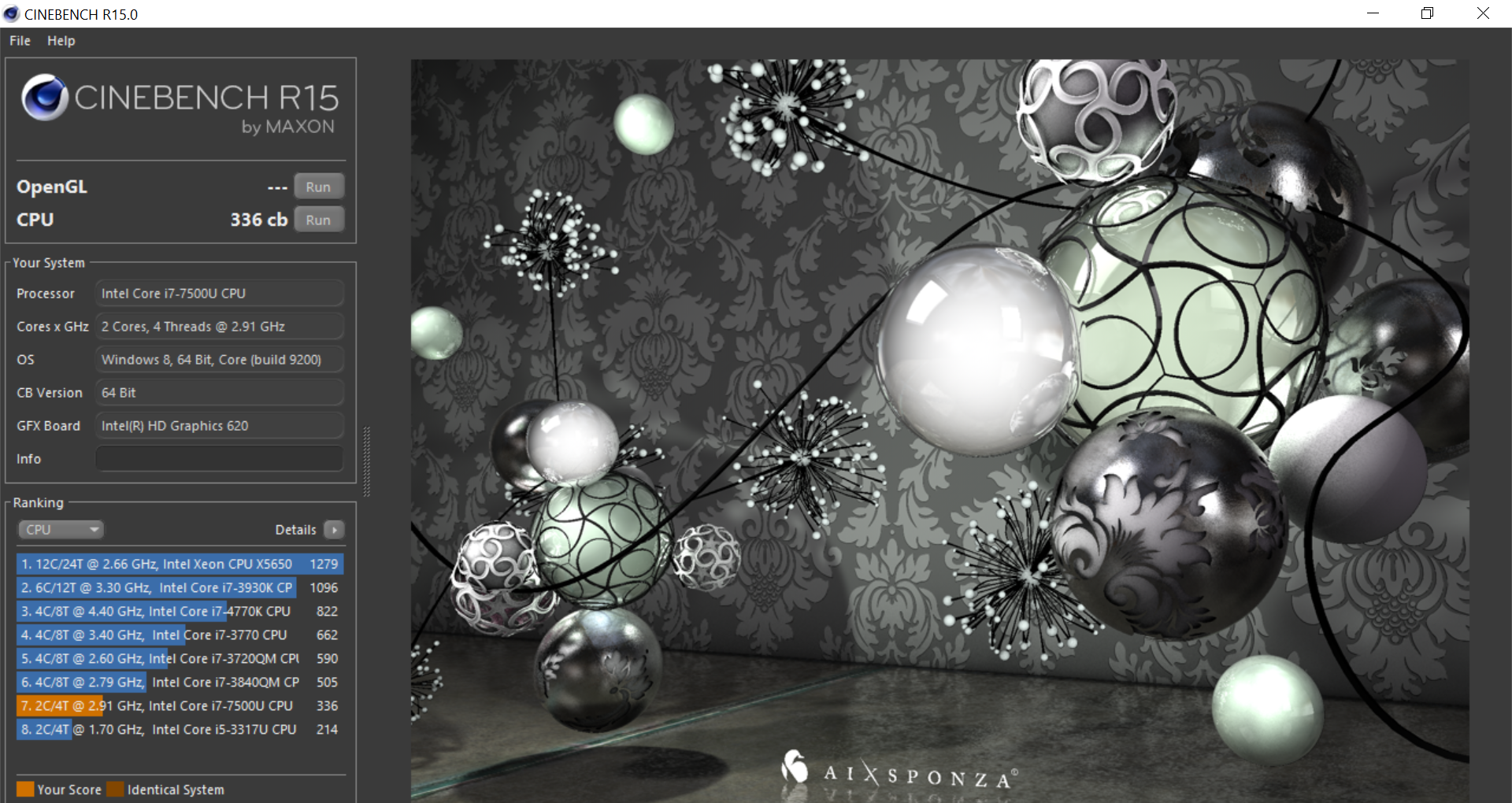 To test the i7-7500U processor, we first ran the CPU test from Maxon's Cinebench R15. This is a great way of assessing general processor abilities as there are loads of comparison results available, although here we focus on the specific systems we chose as direct competitors.