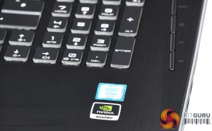 Our WT73VR 7RM includes three drives – two 128GB Toshiba THNSN5128GPU7 M.2 NVMe SSDs and a single 1TB HGST Travelstar 7K1000 7,200rpm conventional SATA hard disk. The two SSDs have been combined together into a RAID 0 array for improved performance, so they appear as a single 256GB drive. The 1TB hard disk will be plenty for carrying your content creation assets with you on the move, and its 7,200rpm rotational speed should provide decent throughput for a 2.5in notebook drive.