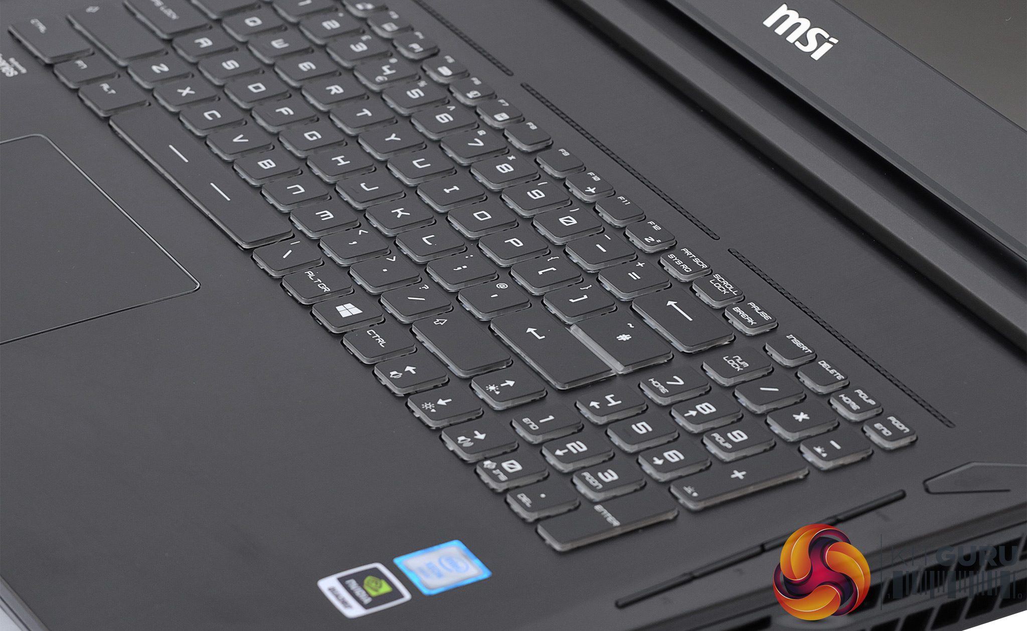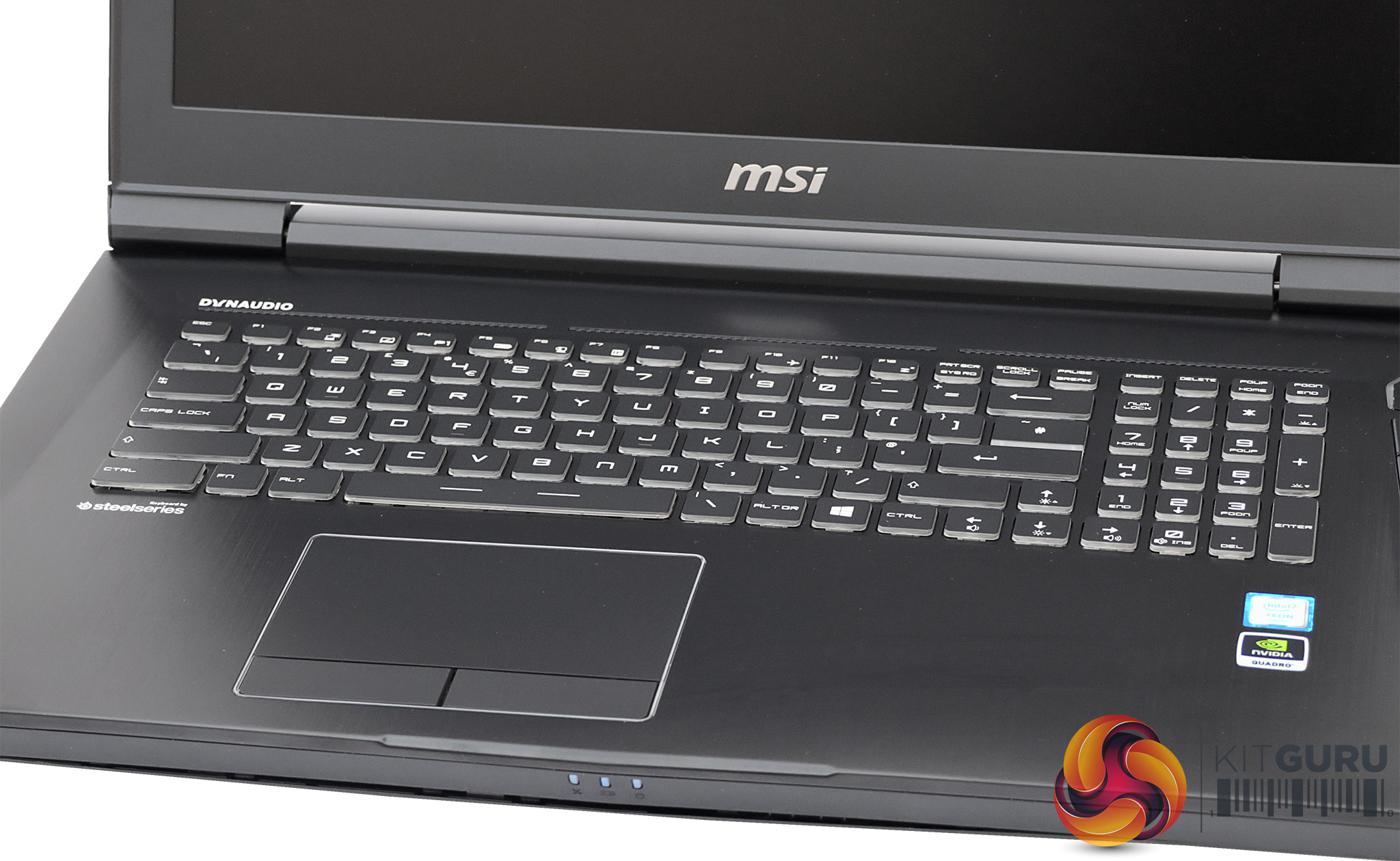 The large chassis means plenty of room for a full-sized keyboard with discrete numeric keypad on the right. The action of the chiclet-style keys is comfortable, and there's loads of space for resting your wrists as you type. The keys sport a blue backlit by default, as does the large trackpad. This has discrete buttons, and is placed directly below the spacebar, minimising the chance of accidental pointer movement caused by the heels of your hands brushing it as you type.