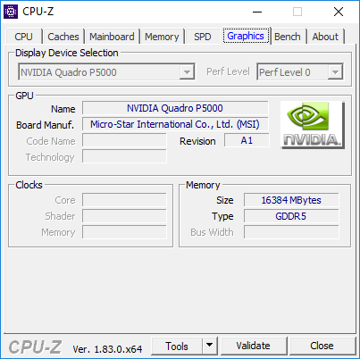 The only graphics available therefore is the mobile NVIDIA Quadro P5000. This has the same 2,048 CUDA cores as the desktop version, and the same 16GB of GDDR5 memory. However, the core speed is considerably slower – 1,164MHz versus 1,607MHz for the desktop version, and with a 1,506MHz Boost versus 1,733MHz.