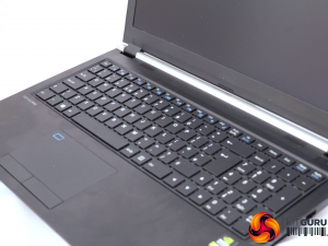 The 15.6in form factor provides enough room for the Chiclet-style keyboard to include a discrete numerical pad. It's a reasonable keyboard, although the action is a little shallow. The large trackpad offers discrete buttons, and a fingerprint reader in the top-left corner.