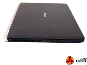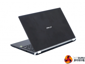 The PNY Prevail Pro is reasonably attractive, certainly more so than many Clevo chassis. It's still a no-nonsense laptop, with just a few silver flashes on the hinge to break the theme of matte black. But it's not particularly thick even at the rear, measuring just 18mm, so should slip into most laptop bags.