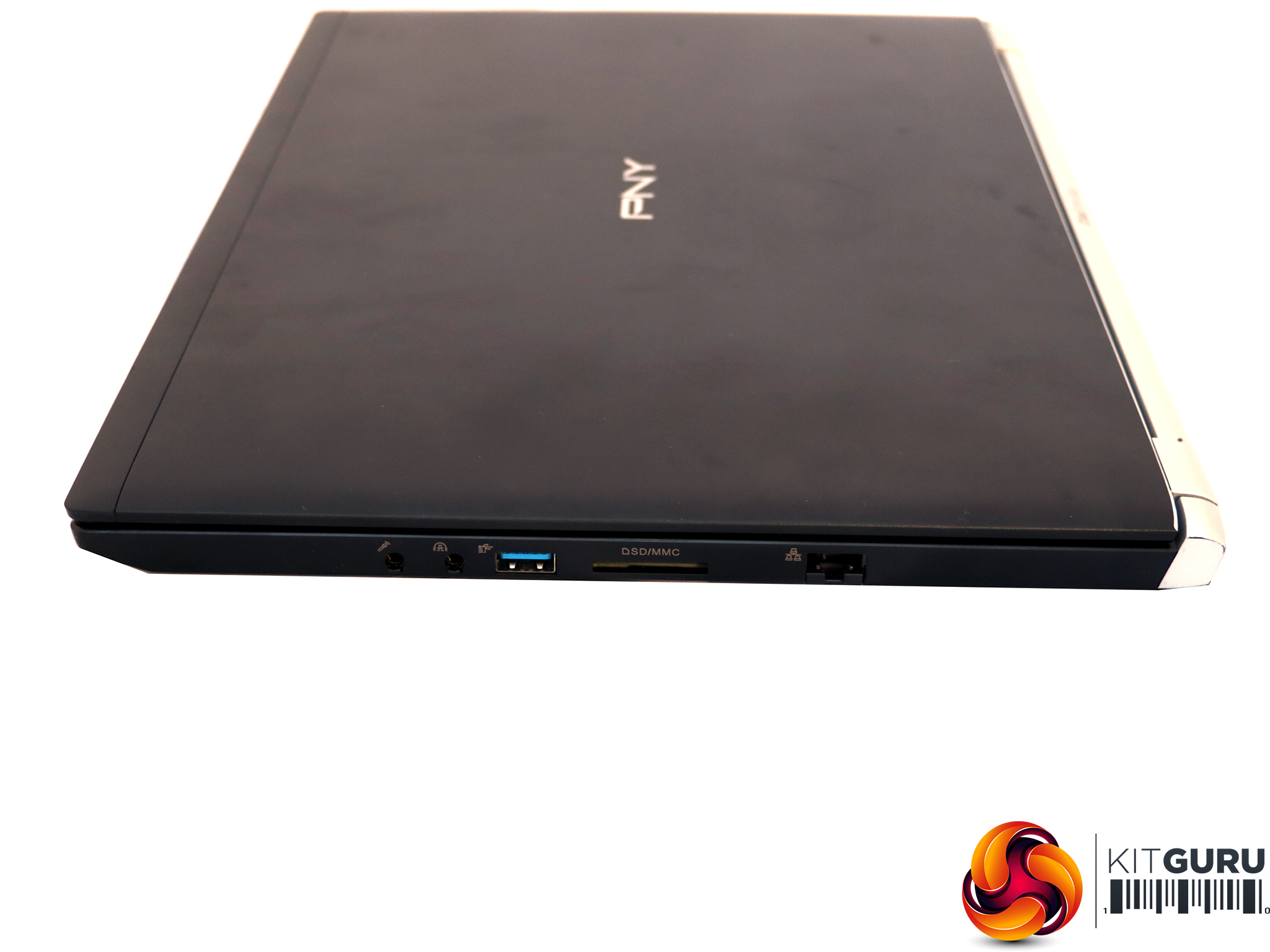 The PNY Prevail Pro is reasonably attractive, certainly more so than many Clevo chassis. It's still a no-nonsense laptop, with just a few silver flashes on the hinge to break the theme of matte black. But it's not particularly thick even at the rear, measuring just 18mm, so should slip into most laptop bags.