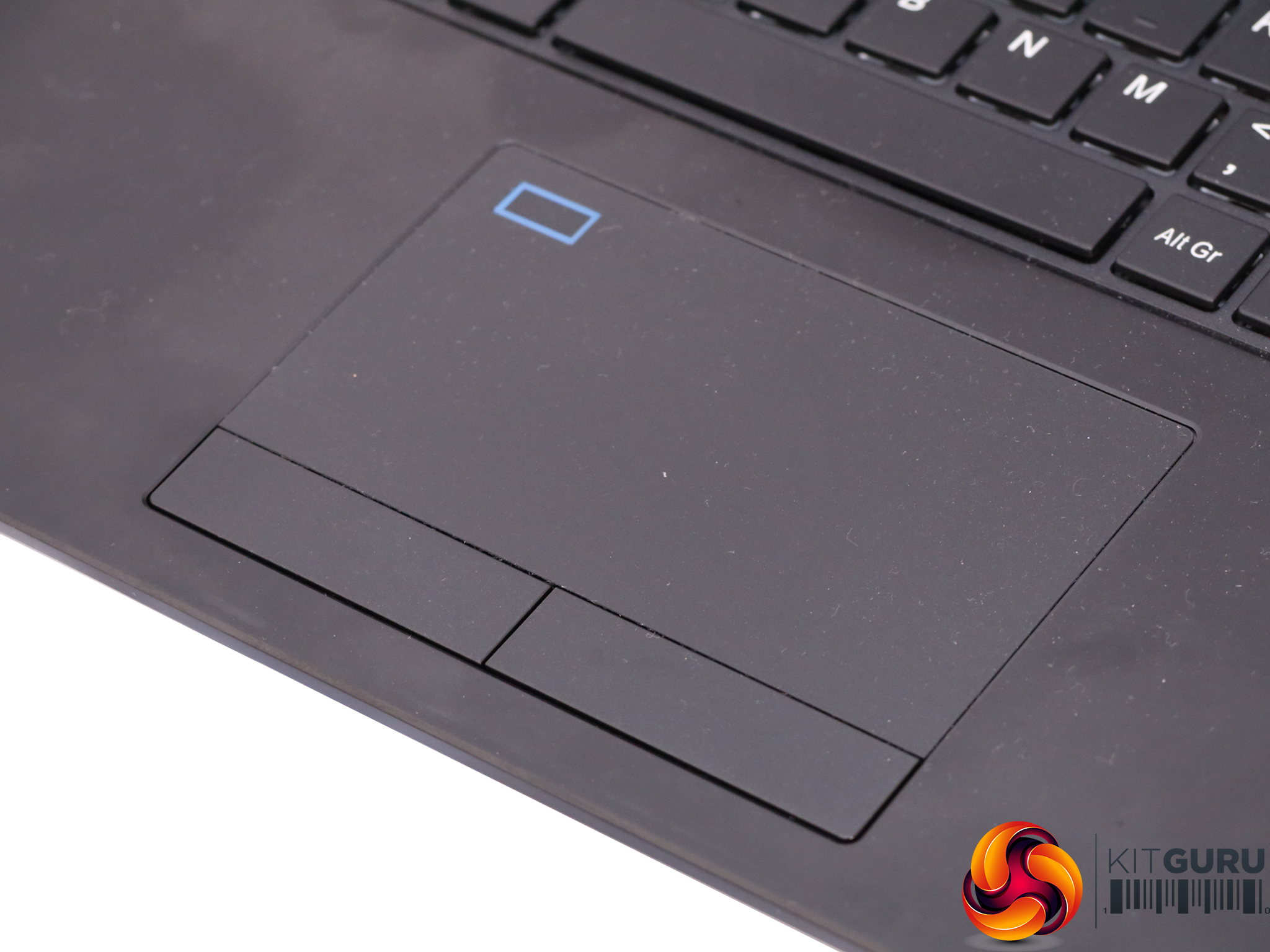 The 15.6in form factor provides enough room for the Chiclet-style keyboard to include a discrete numerical pad. It's a reasonable keyboard, although the action is a little shallow. The large trackpad offers discrete buttons, and a fingerprint reader in the top-left corner.