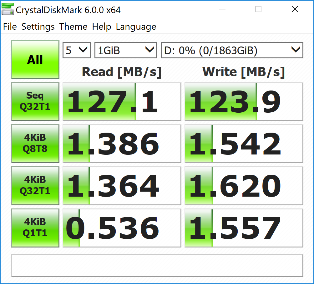 CrystalDiskMark is a useful benchmark to measure theoretical performance levels of hard drives and SSD’s. We are using V6.0.0 x64.
