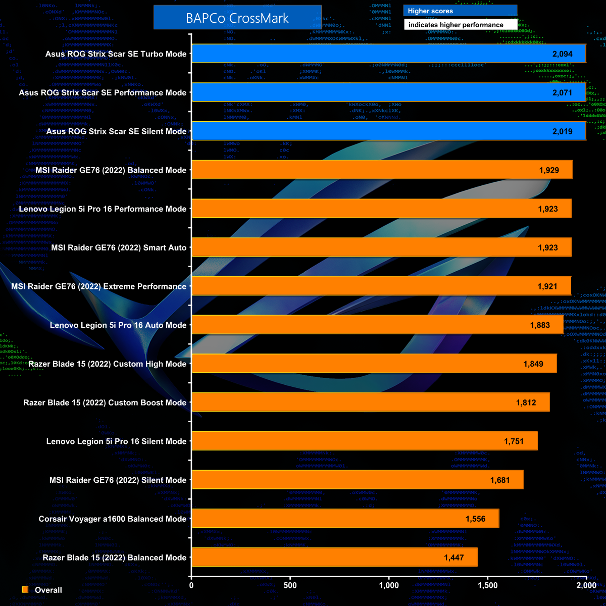 We know full well that BAPCo CrossMark favour Intel systems but this particular Asus laptop running on an Intel CPU beats every other laptop we have reviewed, regardless of the power mode. It is remarkable to see how well the Asus performs in Silent Mode.