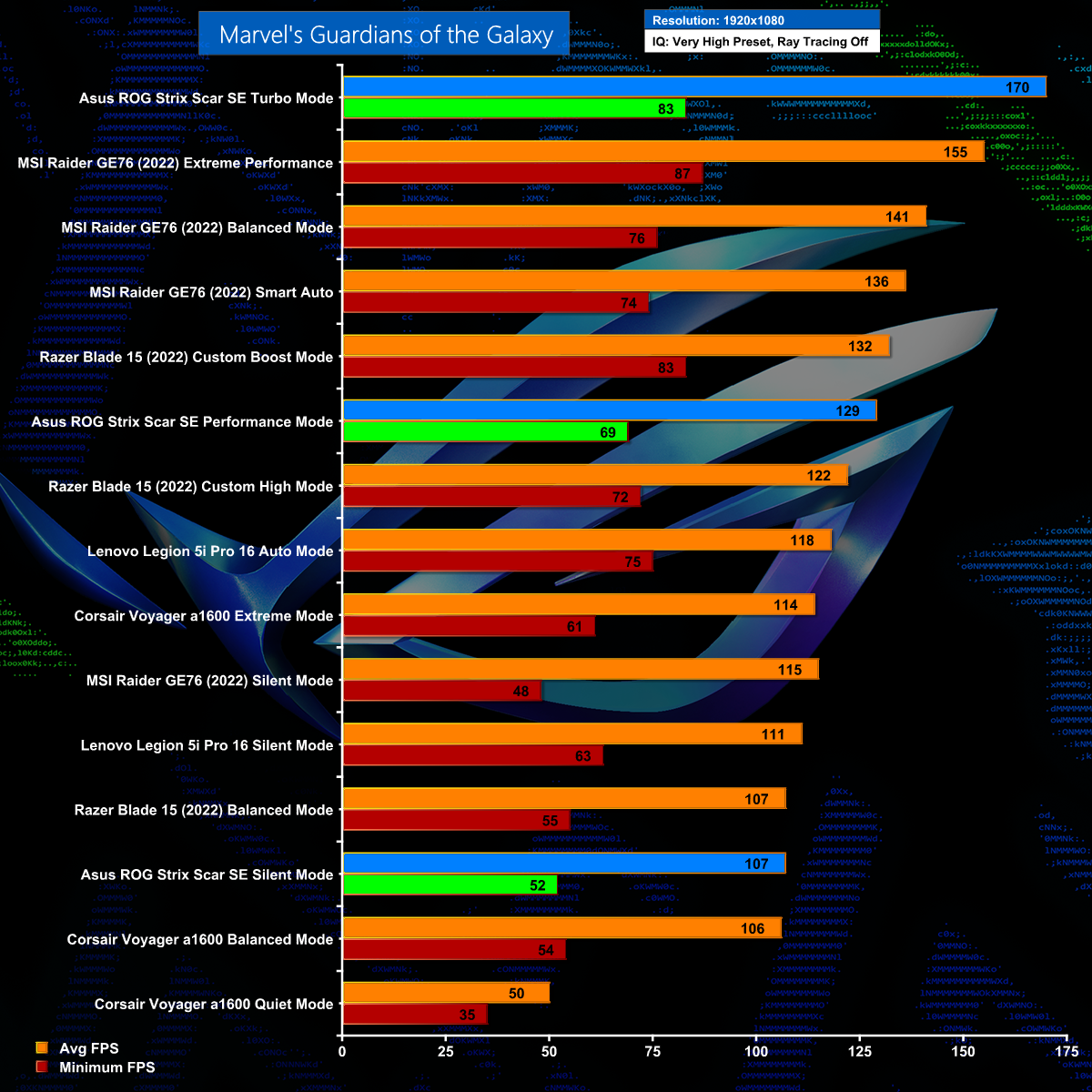Marvel's Guardians of the Galaxy flies along at 1440p on the Asus and gives a great experience, no matter which settings you choose.
