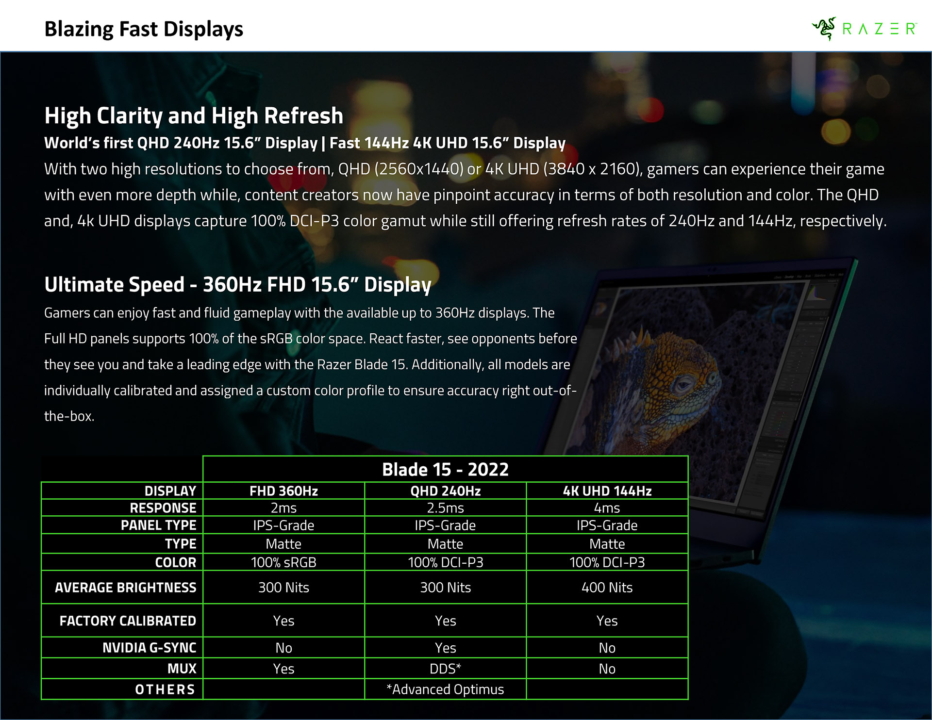 - Display: 15.6-inch FHD 360Hz, 100% sRGB, 2ms, individually factory calibrated