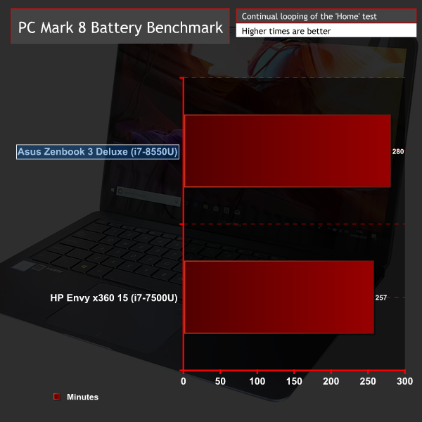 Impressively, the Zenbook lasted for more than four hours in both the PC Mark 8 Work and Home benchmarks despite the smaller power pack and the beefed-up processor. That’s better than the HP, and far better than the original Zenbook.