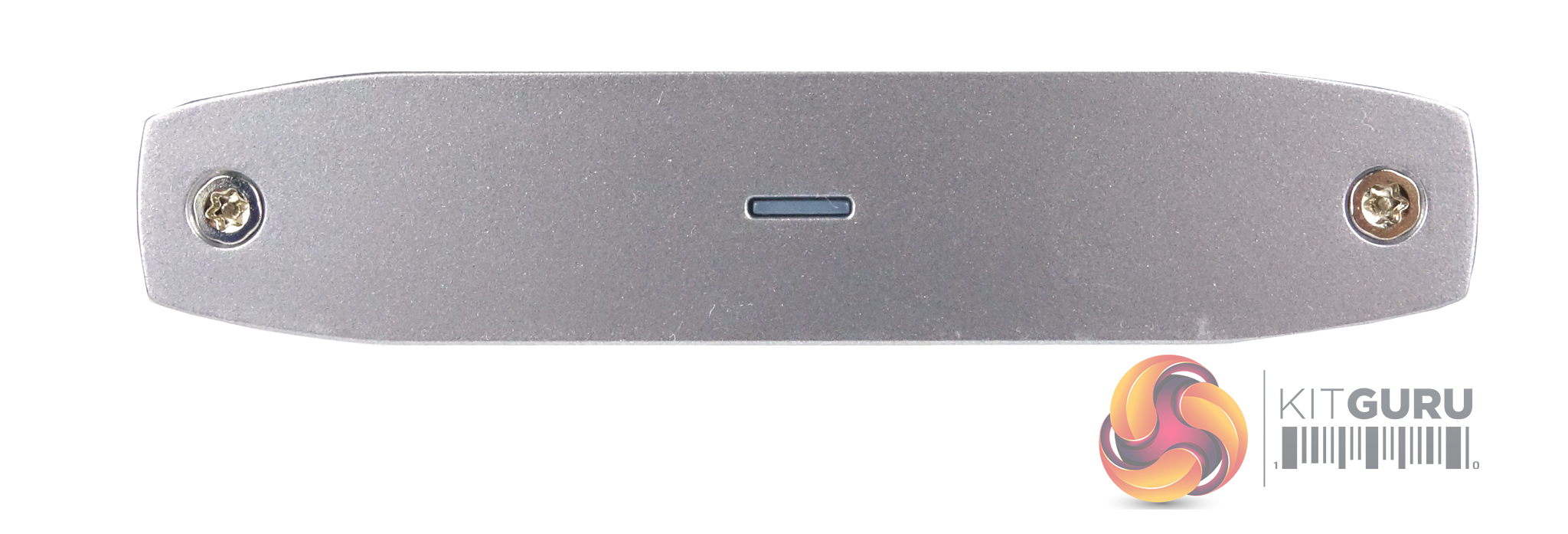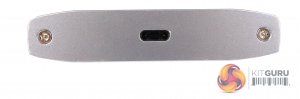 The drive is powered via the Thunderbolt 3 connection and is only compatible with Thunderbolt 3 ports, it doesn't work when connected to a USB Type-C port. The end plate at the other end of the drive holds a white drive activity LED.