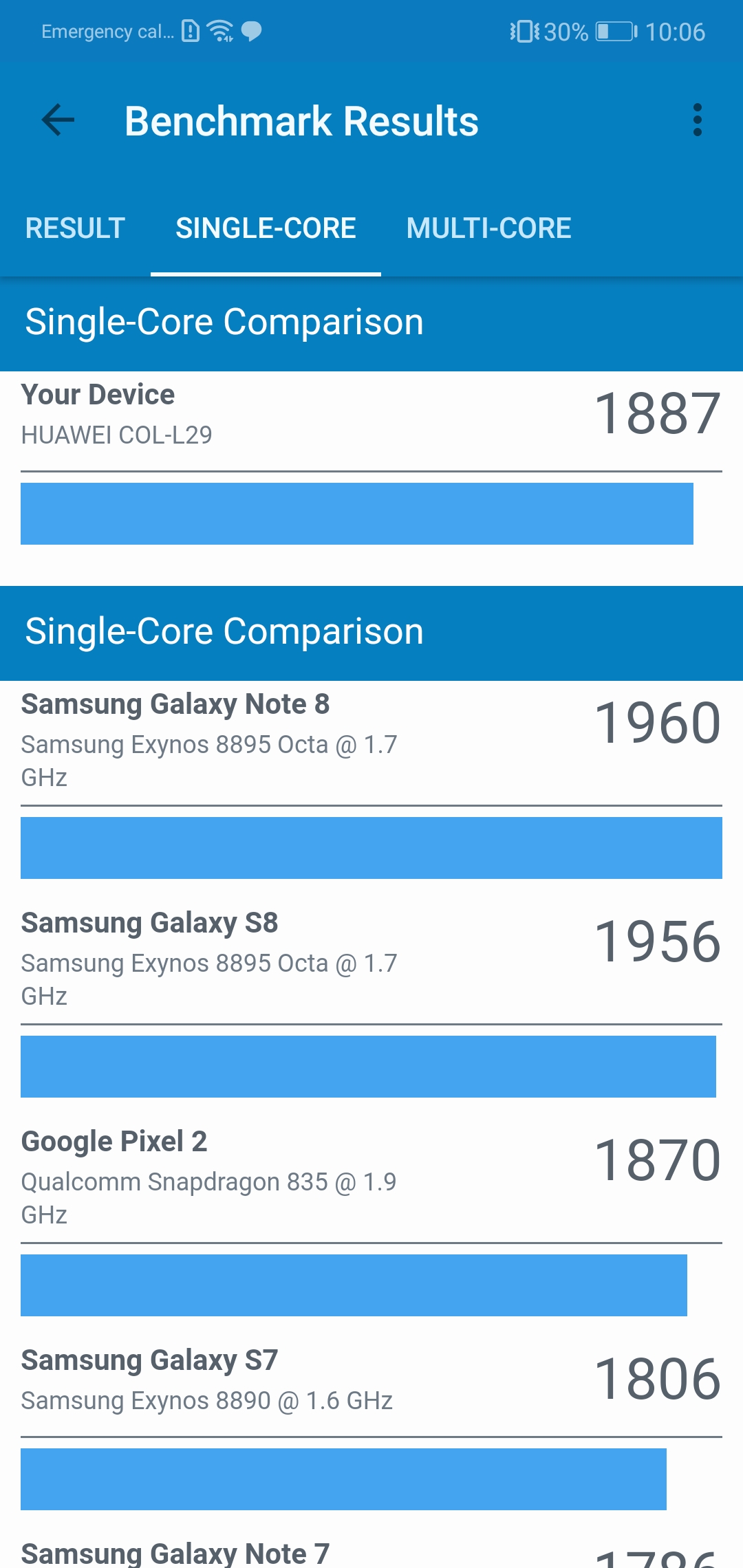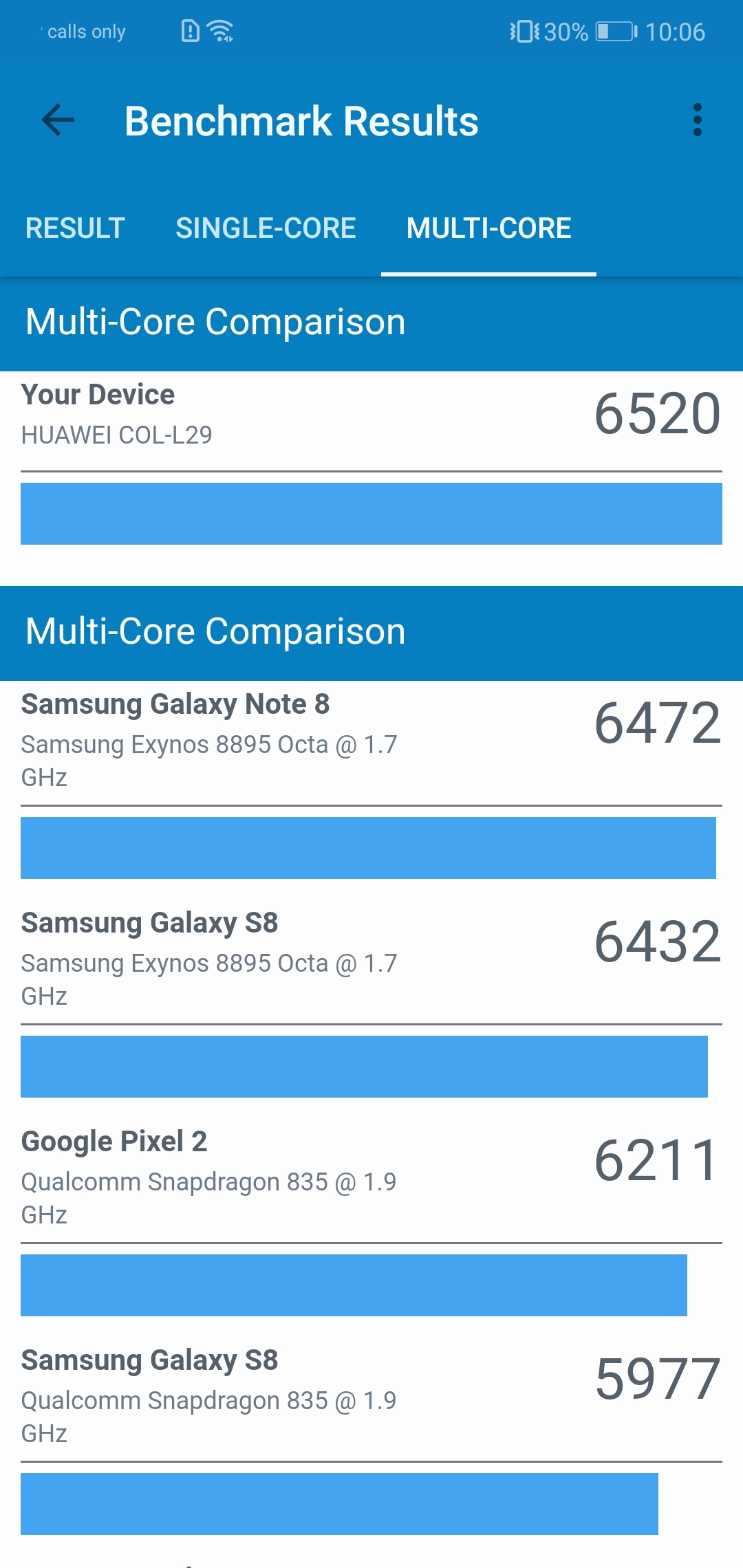 As expected, the synthetic benchmarks suggest performance of the Honor 10 is very similar to that of the Mate 10 Pro and the P20 Pro – after all, the processor is the same. The Honor does score marginally less in Geekbench 4, which is likely due to the fact that it has 4GB RAM compared to the 6GB found with the other two Huawei flagships, but the difference is not big.