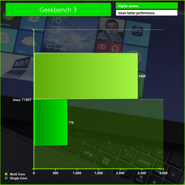The T100T delivers solid performance for a tablet, although it is significantly slower than most full-size Windows 8.1 notebooks. Still, it has enough power to complete basic tasks such as word processing and multimedia playback, so it should more than suffice for most users.