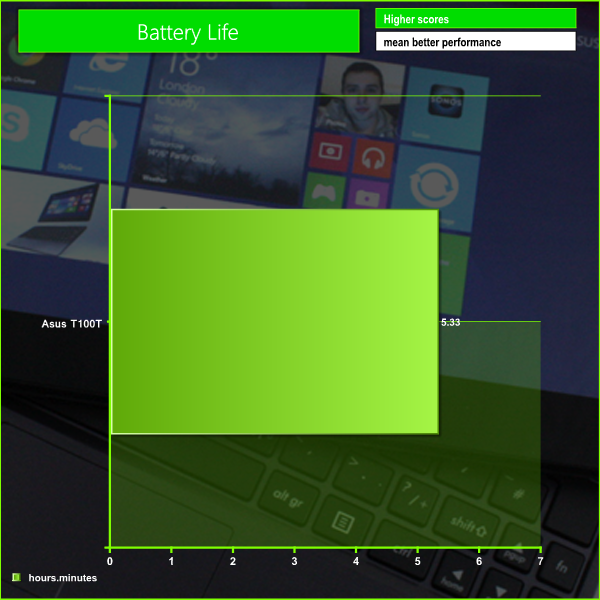 This test is fairly intensive so five and a half hours is a perfectly respectable score. We imagine that you would be able to get even longer out of it with the screen dimmed slightly and WiFi turned off.