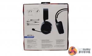Similar to other Arctis products, the SteelSeries Arctis 3 Bluetooth ships in a sleek orange and grey box with the headset fully displayed on the front. The rear of the box displays an infographic of the uses, contents and features that the Arctis 3 Bluetooth has to offer.