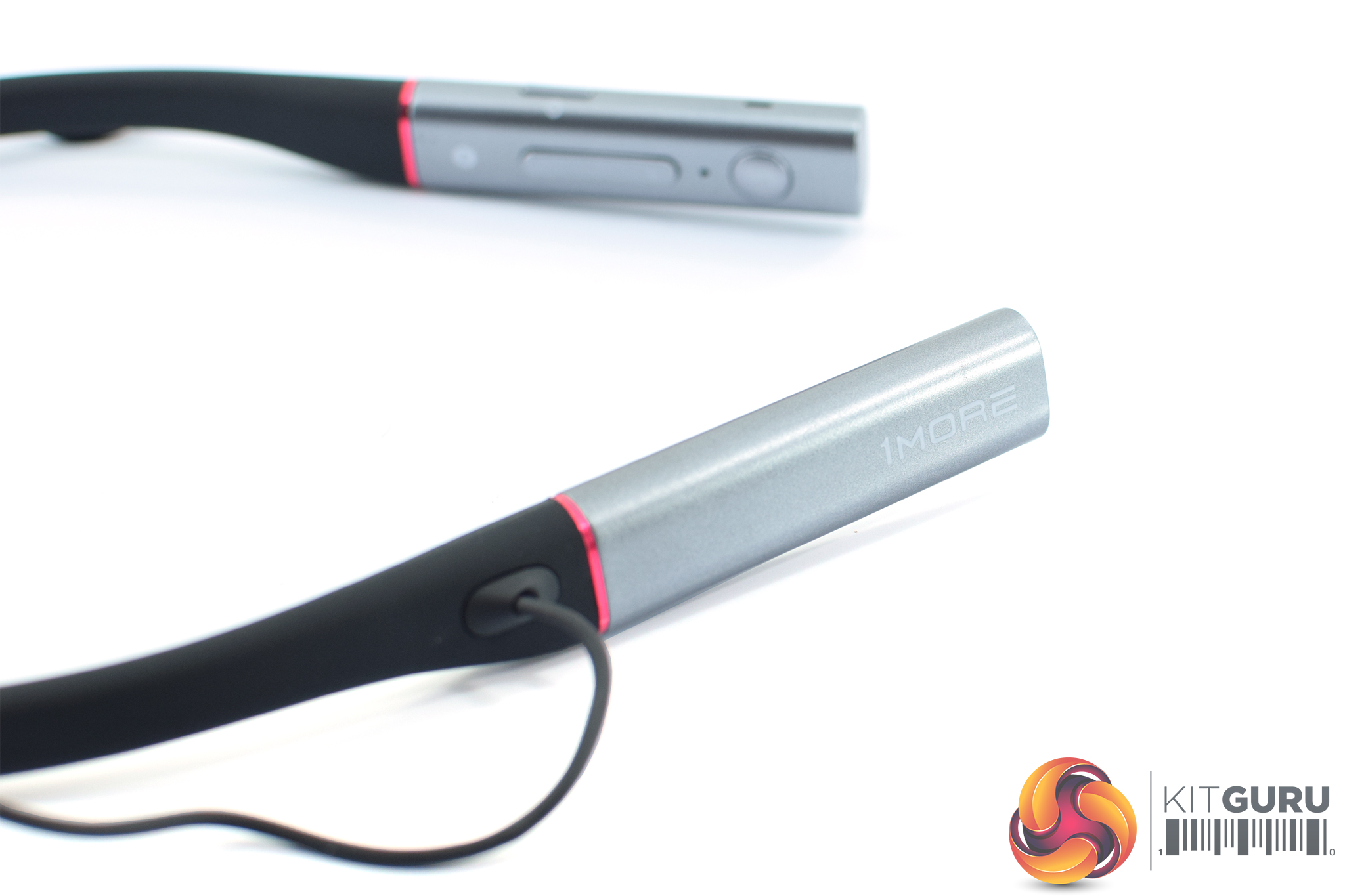 At the bottom of the neckband, we find two silver sections which are used for on-ear controls and battery storage. The outside of each section sports the 1MORE logo, and it is also worth noting all the on-ear controls are on the left-hand side – as we can see above, the right-hand side is left bare.