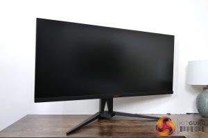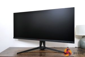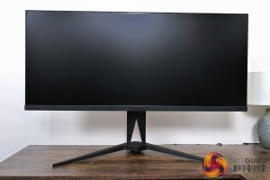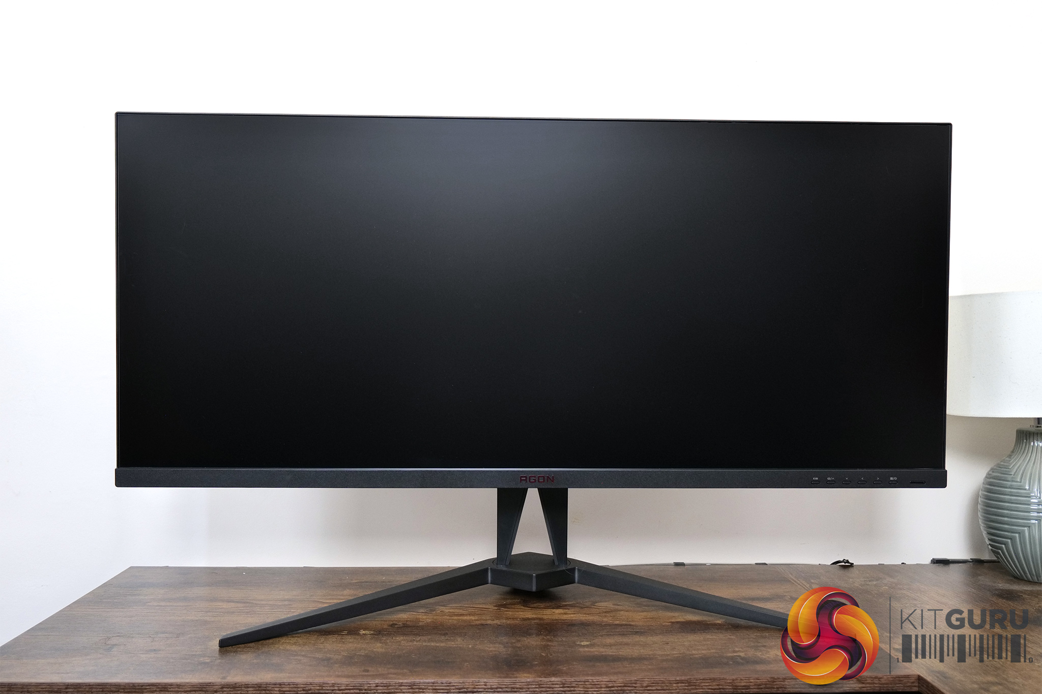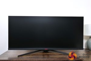 In terms of the design, the AOC Agon AG405UXC is about as stealthy as its possible to be considering the sheer size of this screen. It's almost entirely black, with just a small AGON logo printed in red on the bottom bezel. The top and side bezels are nice and slim too, measuring about 6mm, though the chin is thicker at approximately 1.9mm.