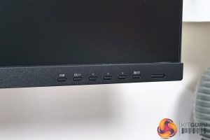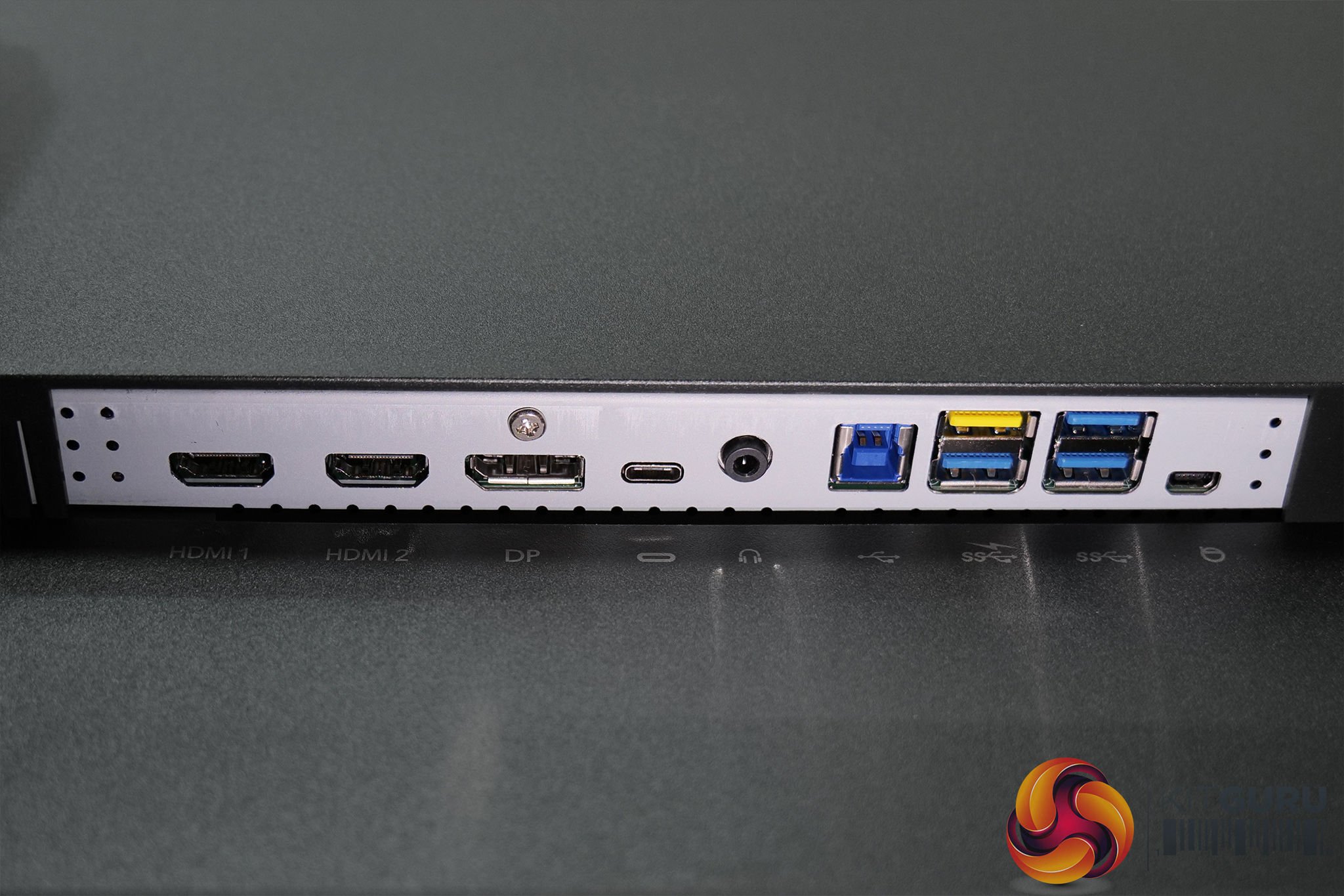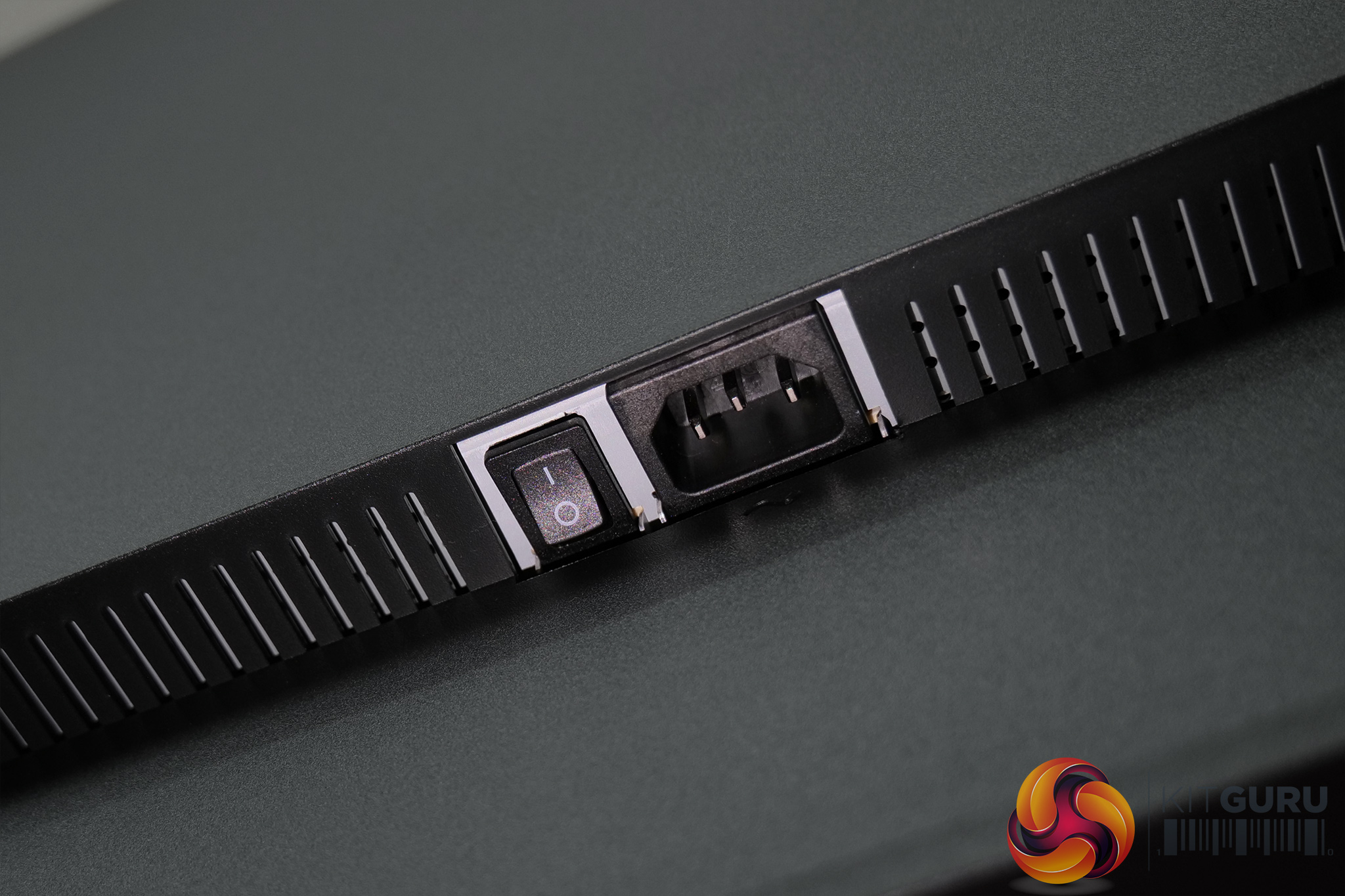 General ports and connectivity options are split in two areas. The left hand side is home to power input and a power switch, while all the video inputs are found on the right hand-side. These include 2x HDMI 2.0, 1x DisplayPort 1.4 an 1x USB-C that supports DP Alt mode as well as 90W power delivery. There's also an audio jack, USB upstream port, and then 4x USB Type-A downstreams.