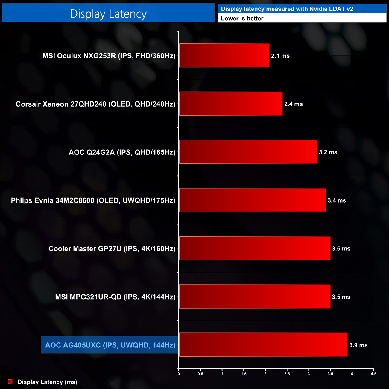 Display latency is fine though. We've not tested as many monitors here and the AG405UXC is the slowest, but we're talking less than a 1 millisecond difference between this and the AOC Q24G2A.