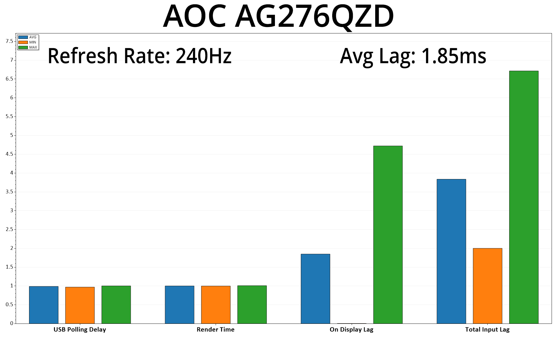 It's great to see that latency is no problem for the AG276QZD, with on display lag averaging 1.85ms, comfortably less than half a frame at 240Hz.