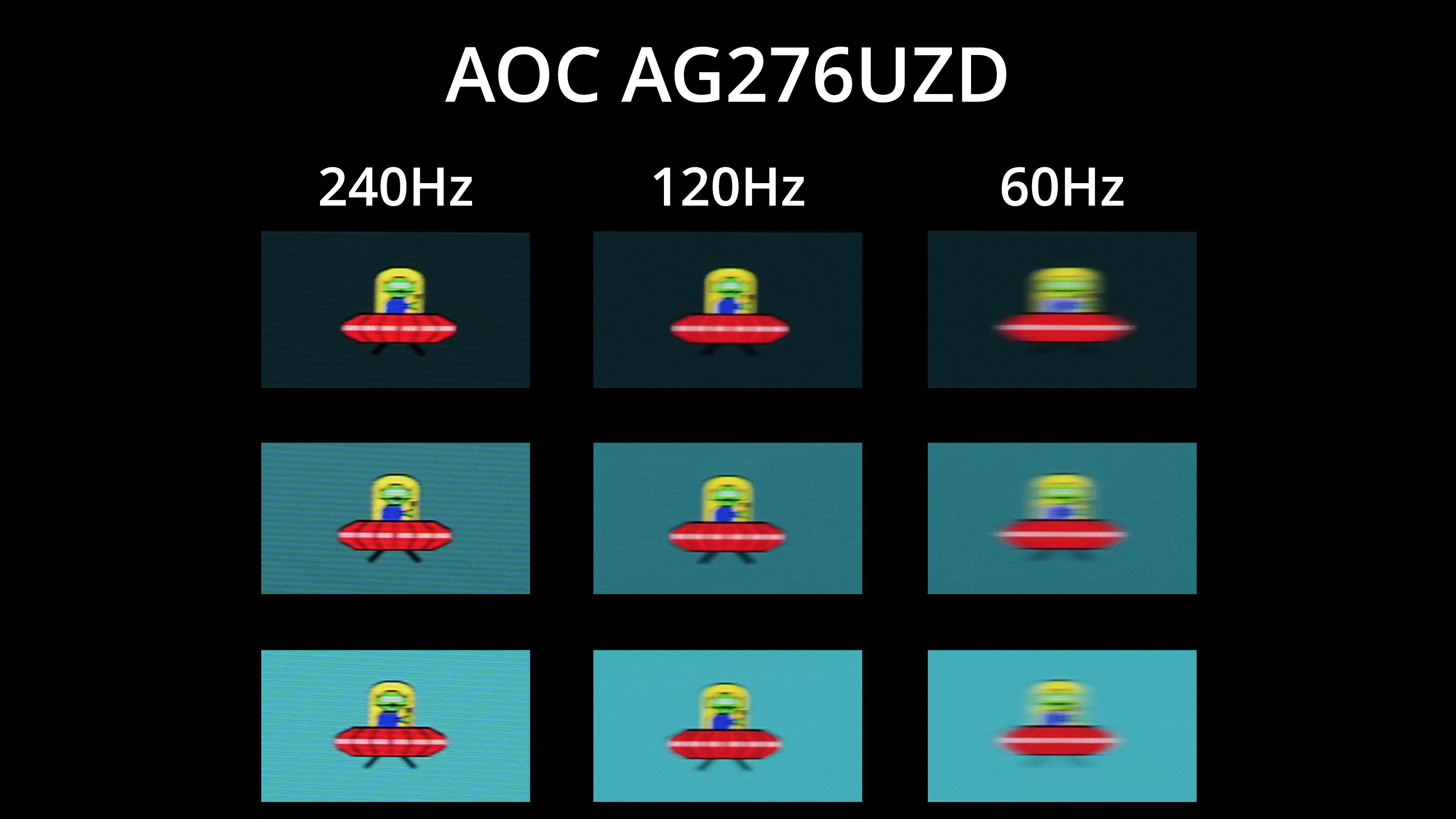 Of course, that doesn't mean motion clarity will be the same regardless of the refresh rate – the higher you can push the refresh, the smoother things look. The jump from 120Hz to 240Hz, for instance, is quite noticeable, but you can also note there is zero ghosting at any given refresh rate target.