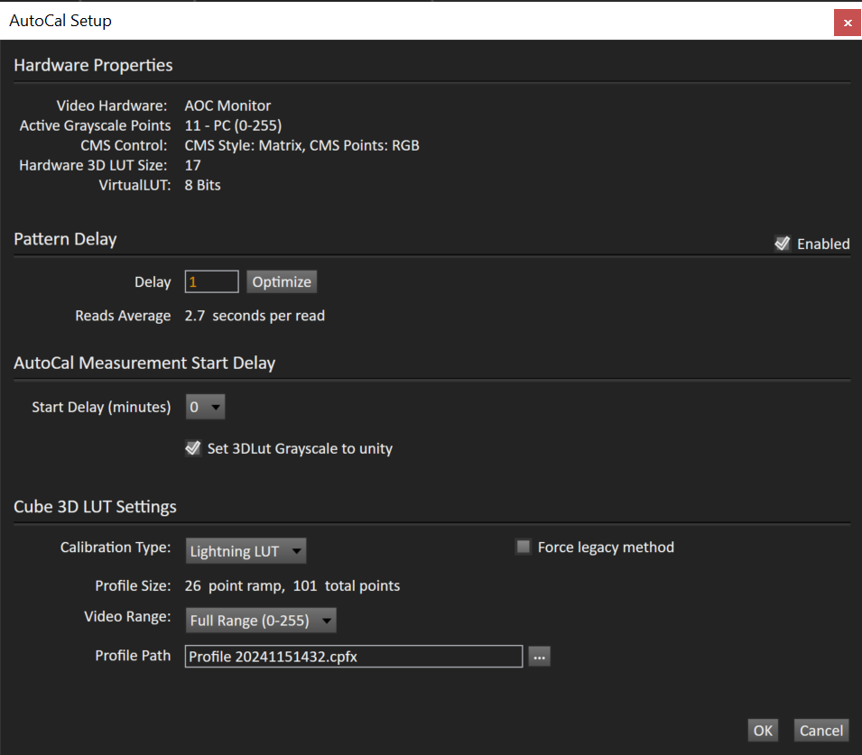 Then we move onto the 3D LUT calibration stage. Hitting ‘AutoCal' once again brings up more options to choose from in regards to the calibration type. We stuck with ‘Lightning LUT' which is fast but potentially not as accurate as the Hybrid and Fixed Grid options, but those are significantly slower.