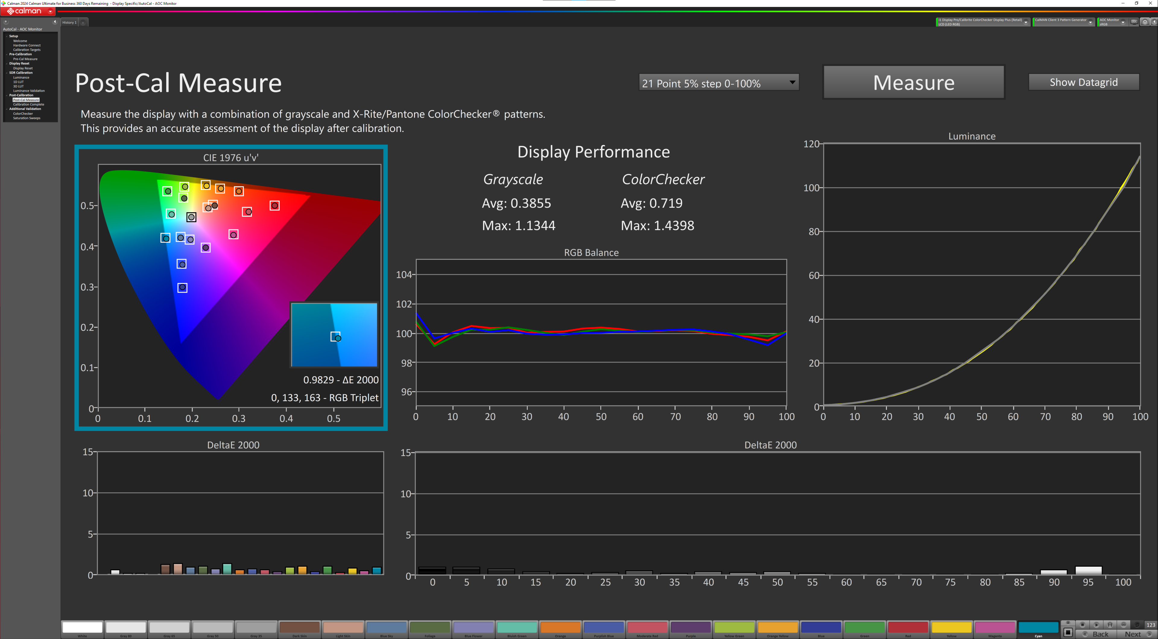 Once the calibration is saved, you can verify luminance once again, and then do a post-calibration measurement which already shows a big improvement compared to the pre-calibration measurement shown above.