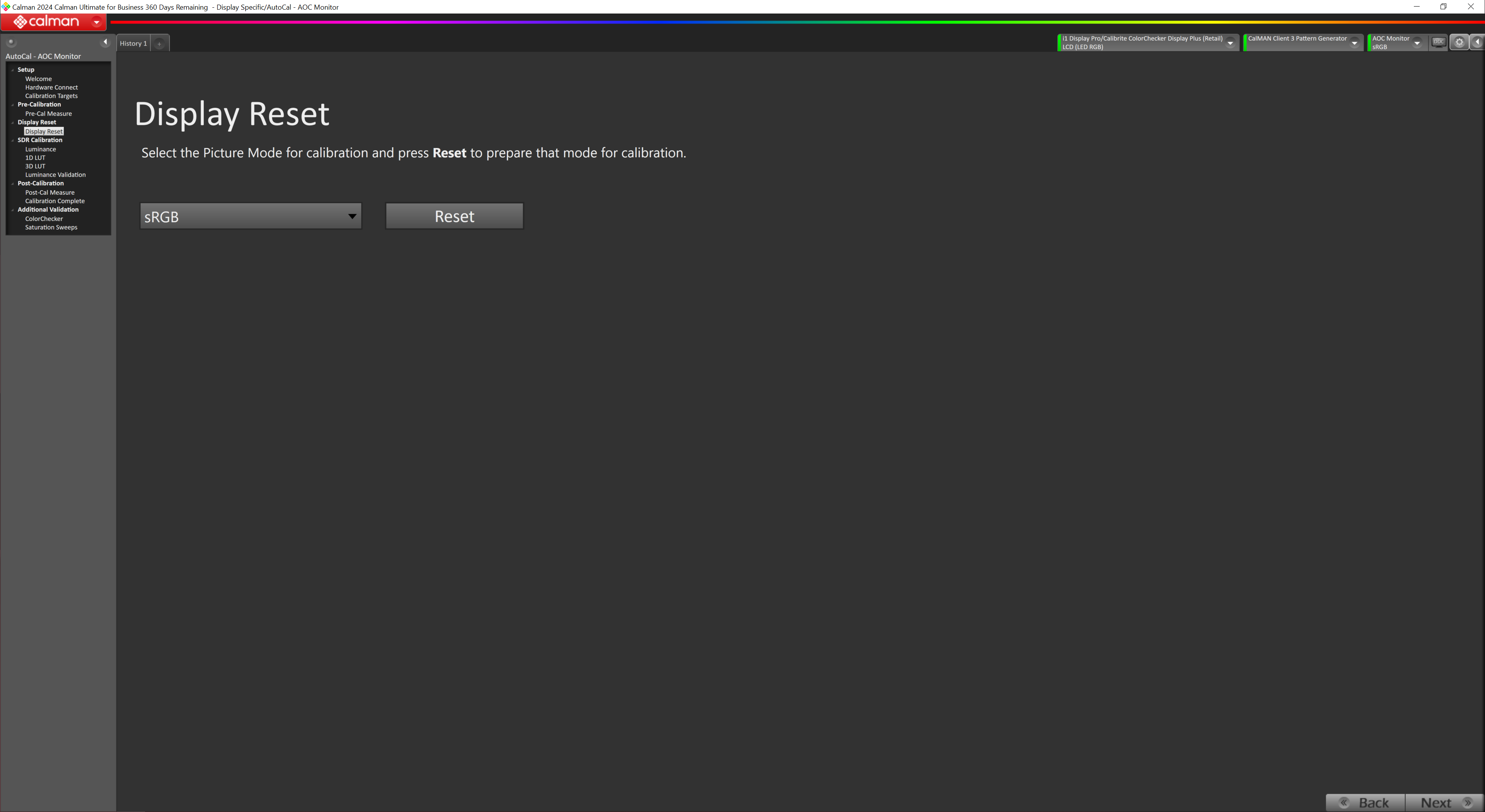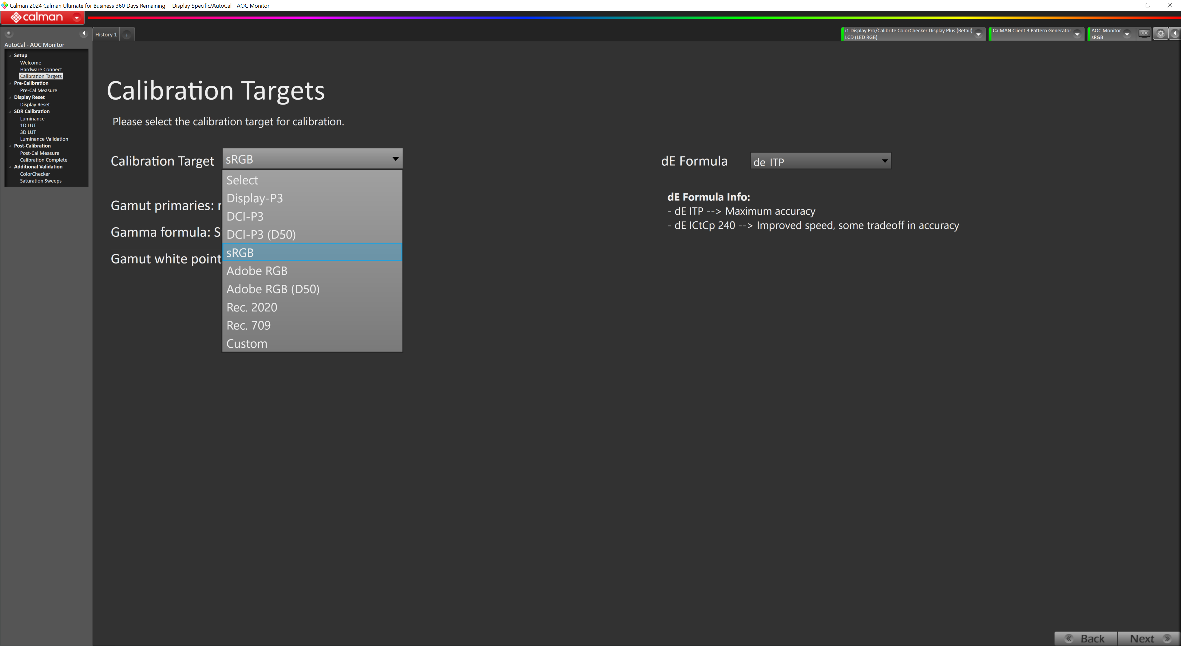 After that, you'll want to choose the calibration target. We're using sRGB for the purposes of this review.
