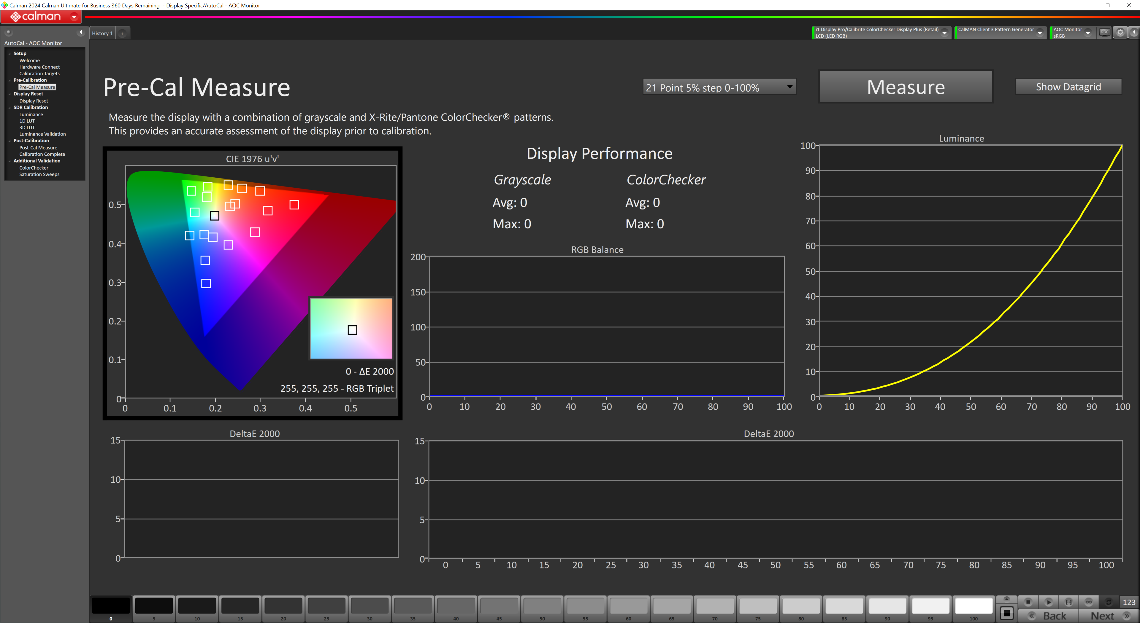 A pre-calibration measurement window will appear, and hitting the ‘measure' button gives you a look at current performance before any tweaks are made.