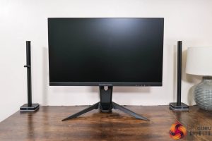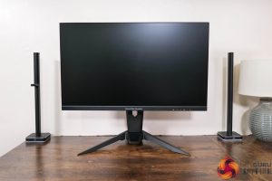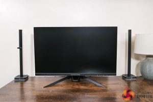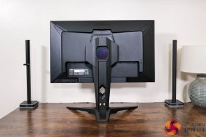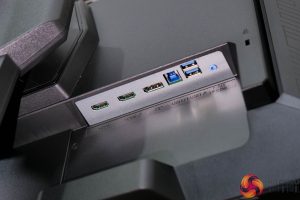 As for I/O, video inputs are fine, with 2x HDMI 2.1 and 1x DisplayPort 1.4. The only other ports are a USB upstream and 2x Type-A downstreams, along with a headphone jack – so that means no USB-C or KVM functionality, which I would hope to see in a monitor at this price.