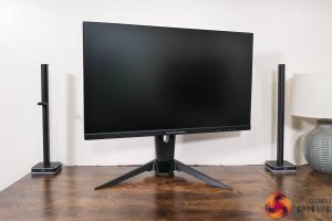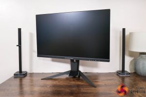 Starting first with the design of the monitor, if you've seen our reviews of the ASRock PG27QFT2A or the PGO32UFS, you will know what to expect. That's because the core design is identical between the three screens, being mostly matte black plastic, with a fairly large and bulky stand.