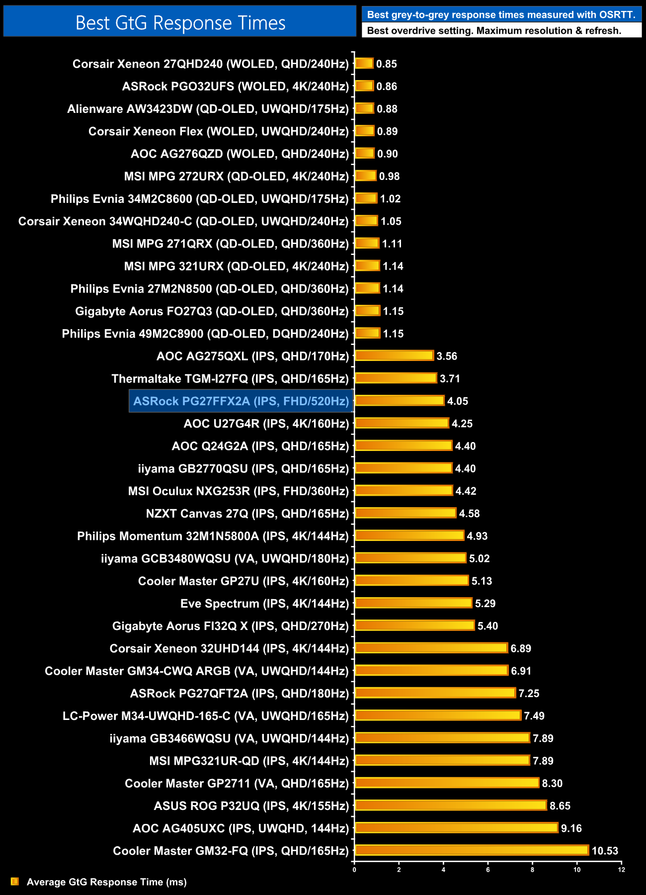 To put those results in context, if we ignore the OLED monitors, this is the third-fastest LCD we've ever tested. You could probably get better speed from a 520Hz TN panel, but that'd be at the expense of overall image quality.