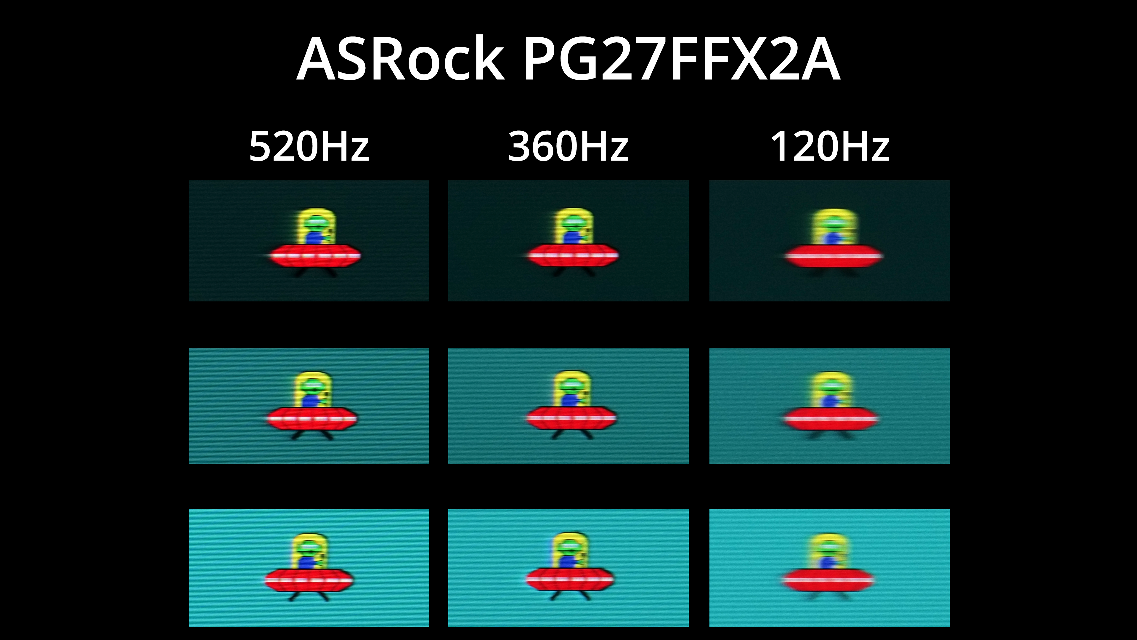 Taking a look at those results in practice, thanks to the BlurBusters UFO test, there may not be a huge improvement in motion clarity at 520Hz over 360Hz, but I do think there is a small benefit to the higher refresh. Compared to 120Hz, it's clear to see the benefit.