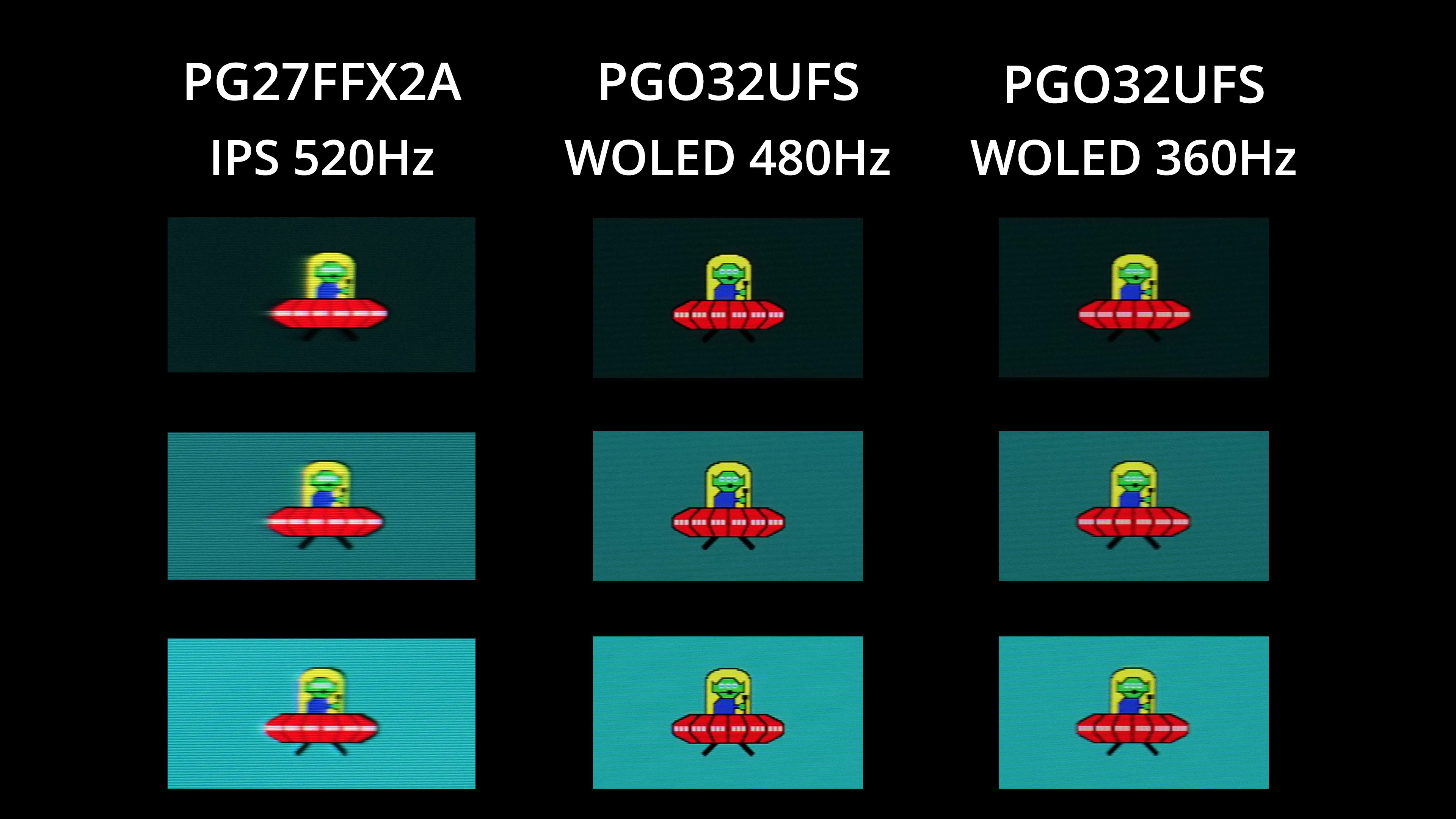 That said, without any form of backlight strobing, high refresh-rate OLED technology will be superior, even against a 520Hz IPS panel. The motion clarity from an OLED at 480Hz is really quite insane, and even at 360Hz I'd say it looks a good chunk better than the PG27FFX2A, though you obviously have to factor in the higher cost of OLED, too.