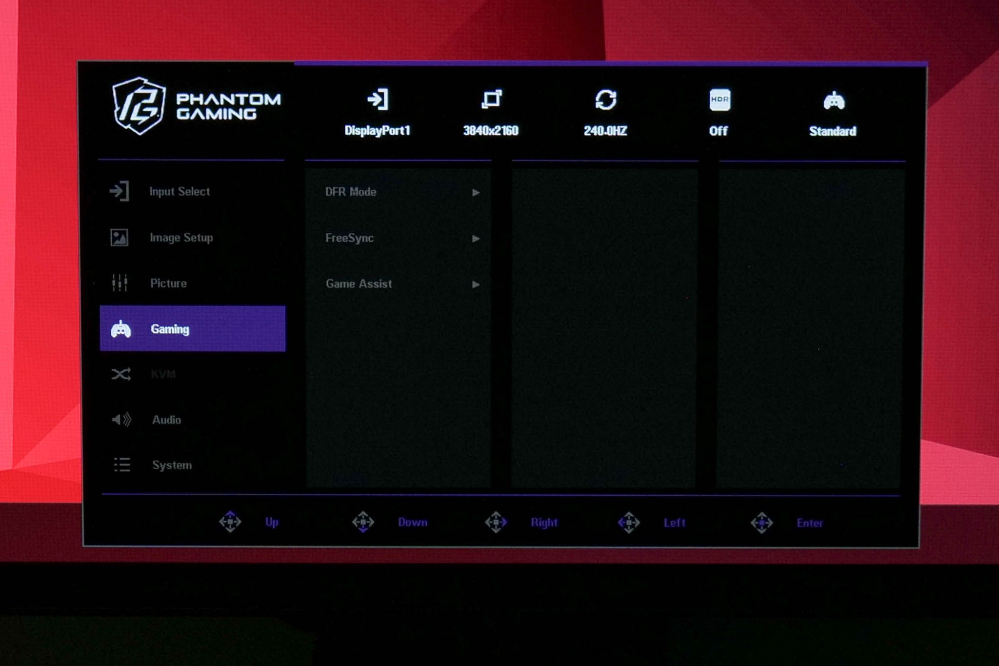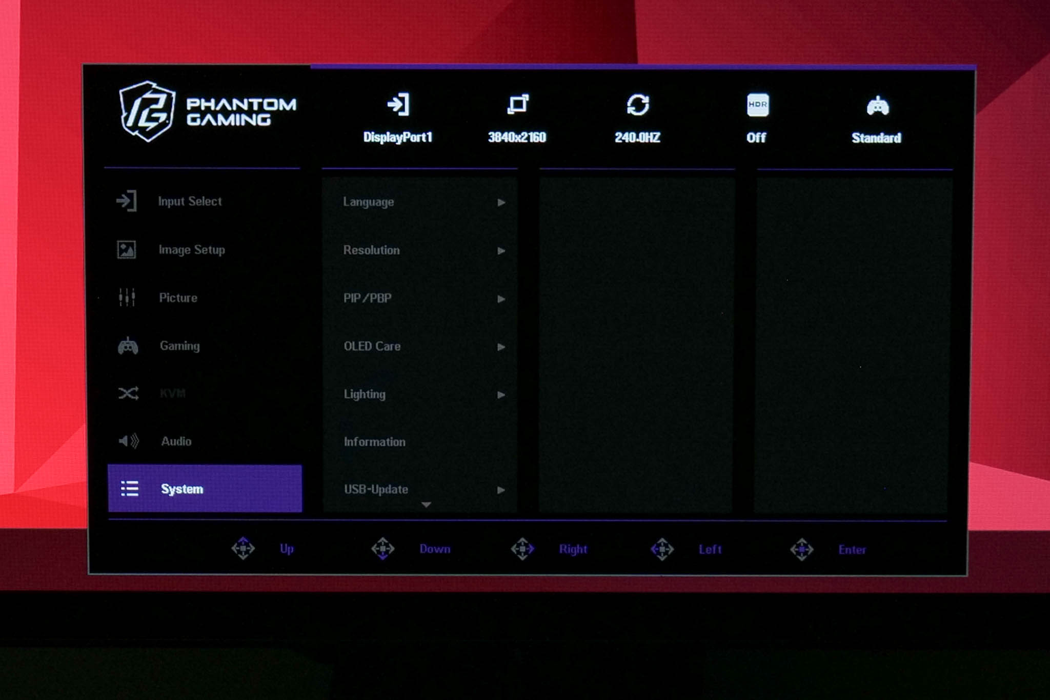 The OSD itself is fine overall, it's very easy to navigate with the joystick and ASRock has included a fair selection of features. That said, I don't like that there's no way to customise quick shortcuts via the joystick, and there's a worryingly small amount of anti-burn in features too. Some of the settings are also slightly confusing, given there's an sRGB mode in ‘Image Setup', but it doesn't actually clamp the gamut unless you also adjust the ‘Color Space' option which is found in the ‘Picture' sub-menu. I think you can tell ASRock is still relatively new to the monitor space as there is room for streamlining here.