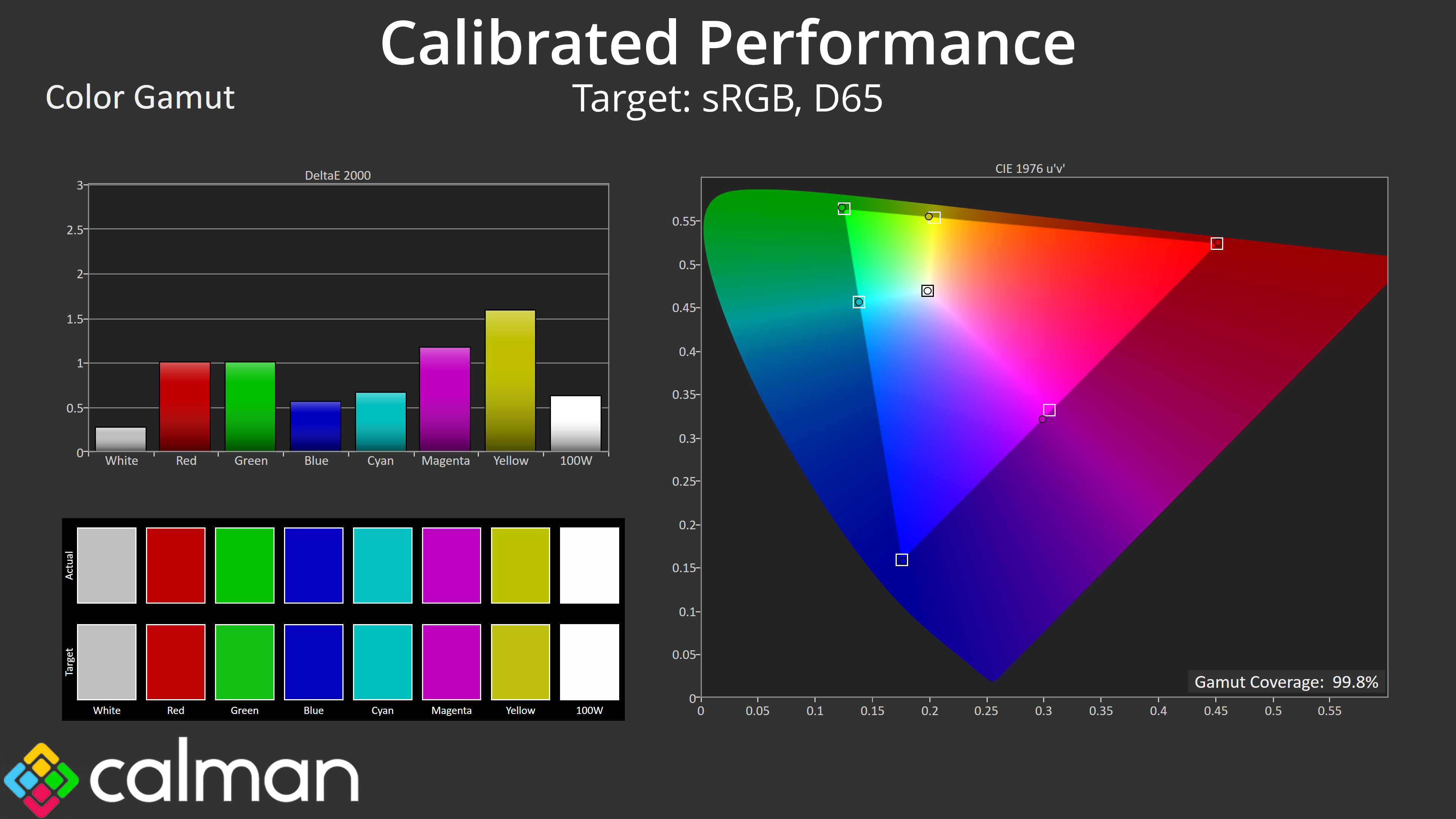 Of course the best results are only possible after calibration, where we saw an almost perfect colour balance and excellent gamma tracking, while saturation and colour accuracy are better still. If you have the tools, it's well worth doing.
