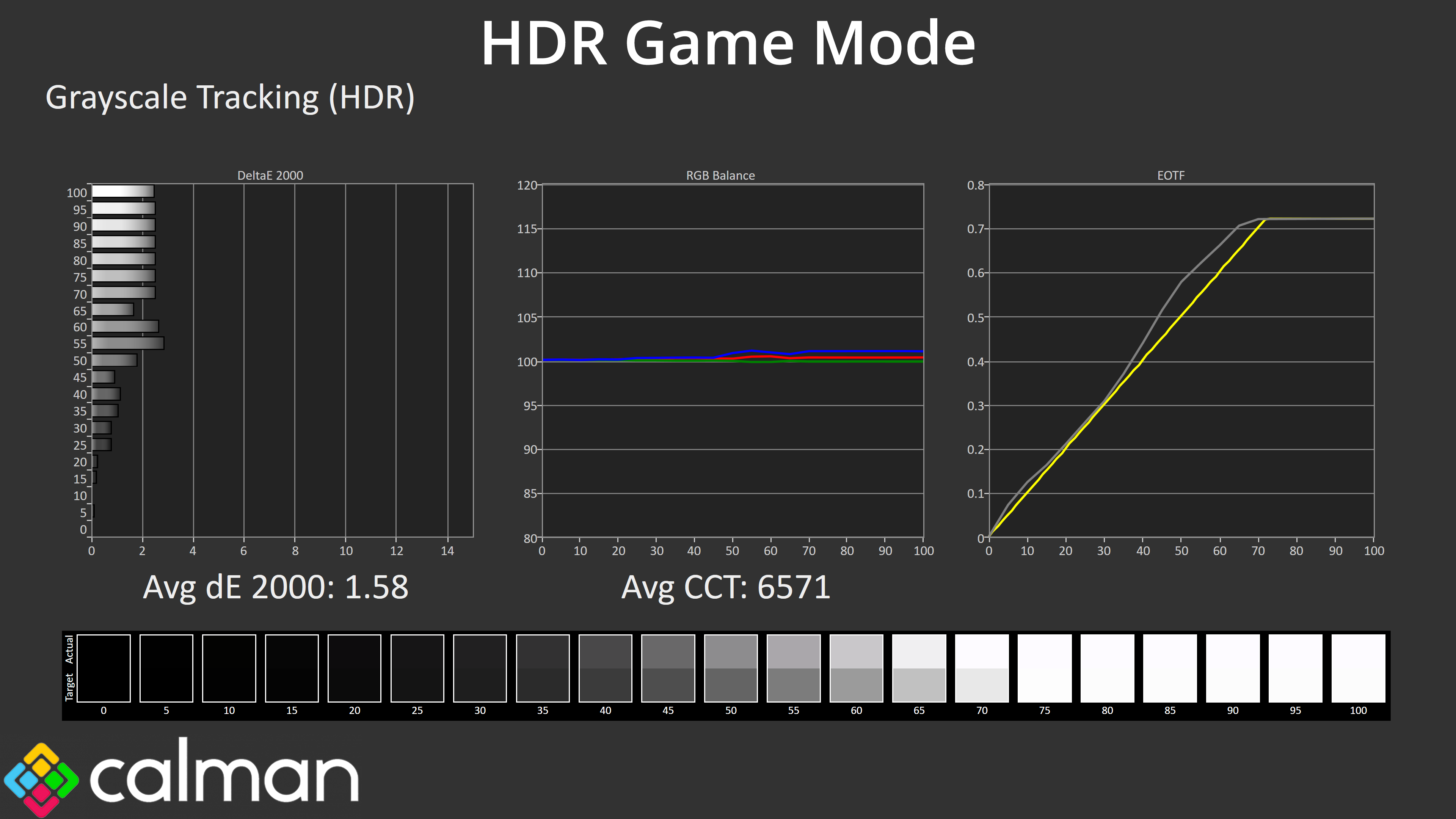 The HDR Game mode is less technically accuracy given its EOTF curve is actually too bright, especially toward the end of the curve, but some users may prefer this image.
