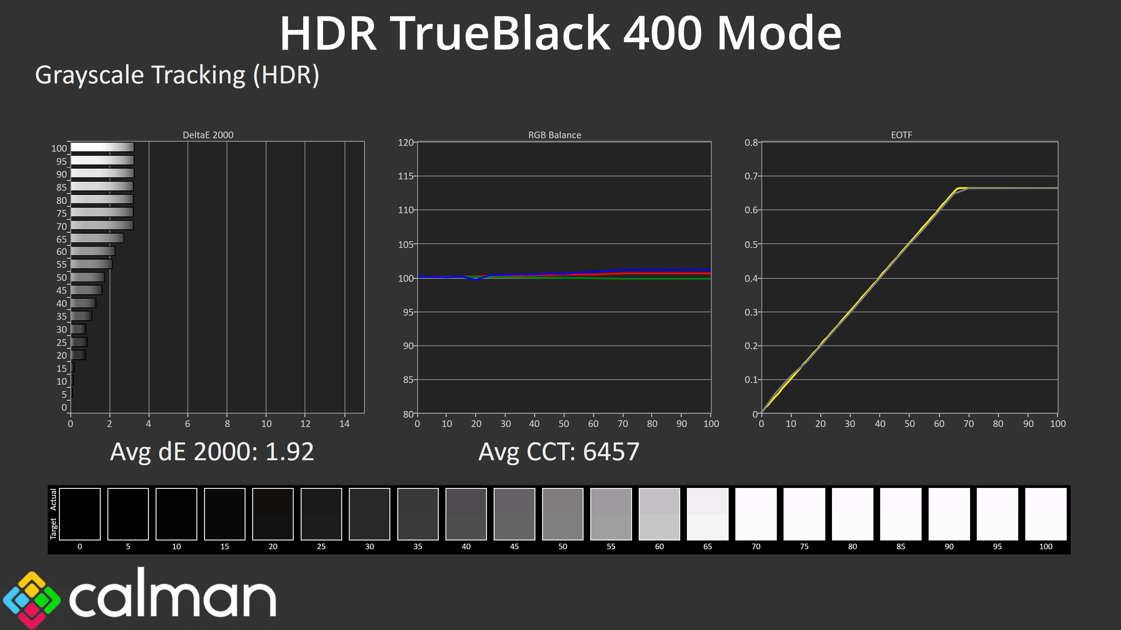 As for greyscale using our default 10% APL, the TrueBlack 400 mode looks well configured with very accurate EOTF tracking.
