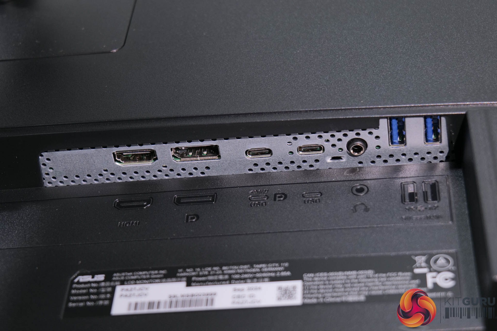 The bulk of the I/O is at the back of the monitor though. The left-hand side features the power input, power switch and a Kensington lock. Over on the right-hand side, ASUS includes 1x HDMI 2.1 and 1x DisplayPort 1.4 inputs (both of which can handle 5K/60Hz), alongside two USB-C ports. The left-hand one supports DP Alt mode and 96W power delivery, while the other only supports data upstream. Then there's an audio jack, and two USB 3.1 Gen1 Type-A downstreams.