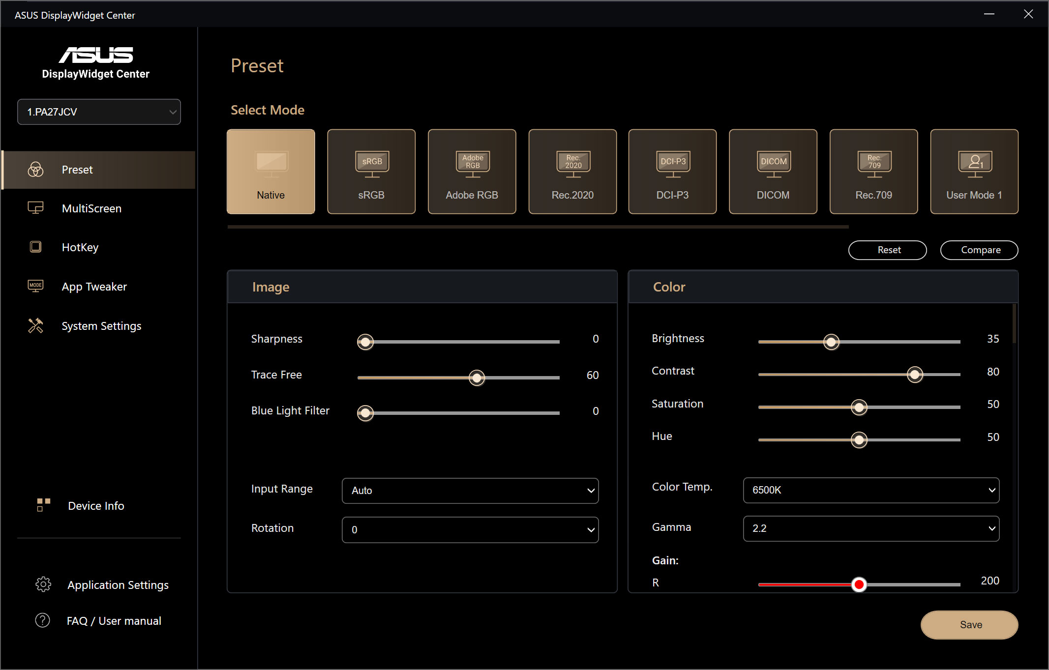 For those interested, ASUS also provides support for its DisplayWidget Center software. This gives you control over the key monitor settings from your PC, so you don't have to fiddle with the OSD to quickly adjust brightness or choose a different colour mode. This is currently only available for Windows, and not macOS.