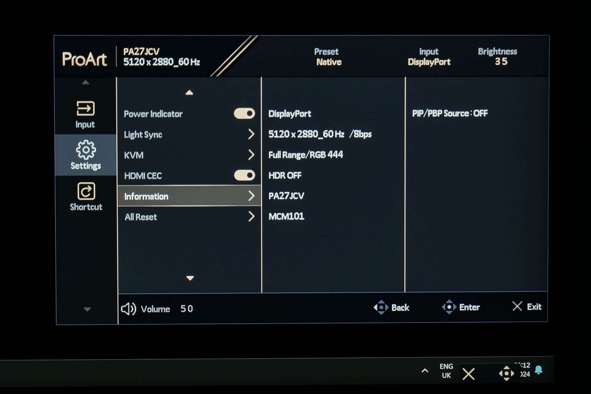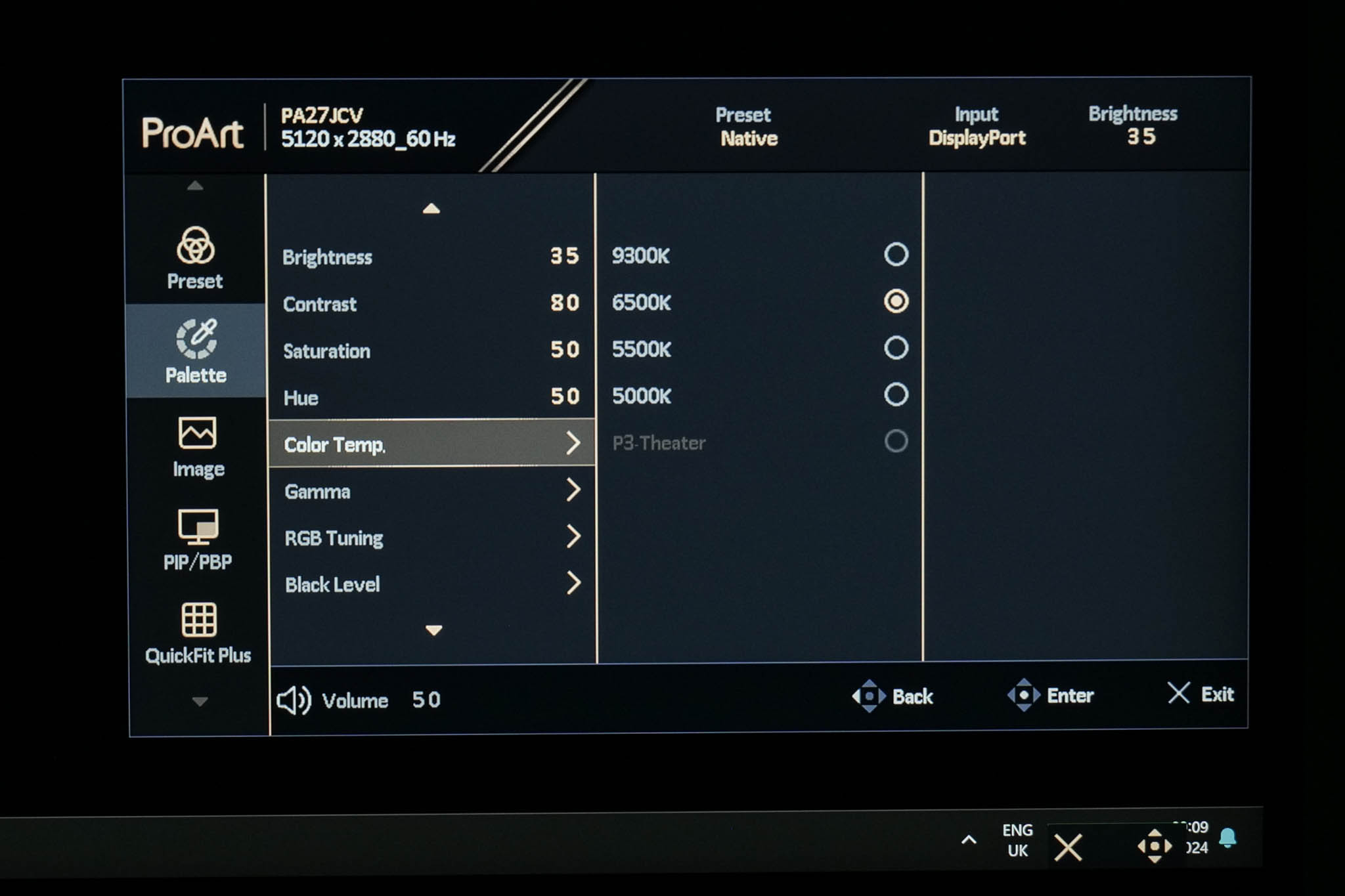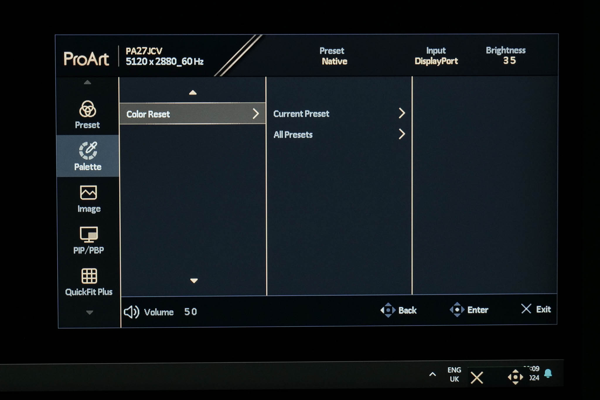 The ProArt PA27JCV OSD is split into eight main tabs, which we will break down below.
