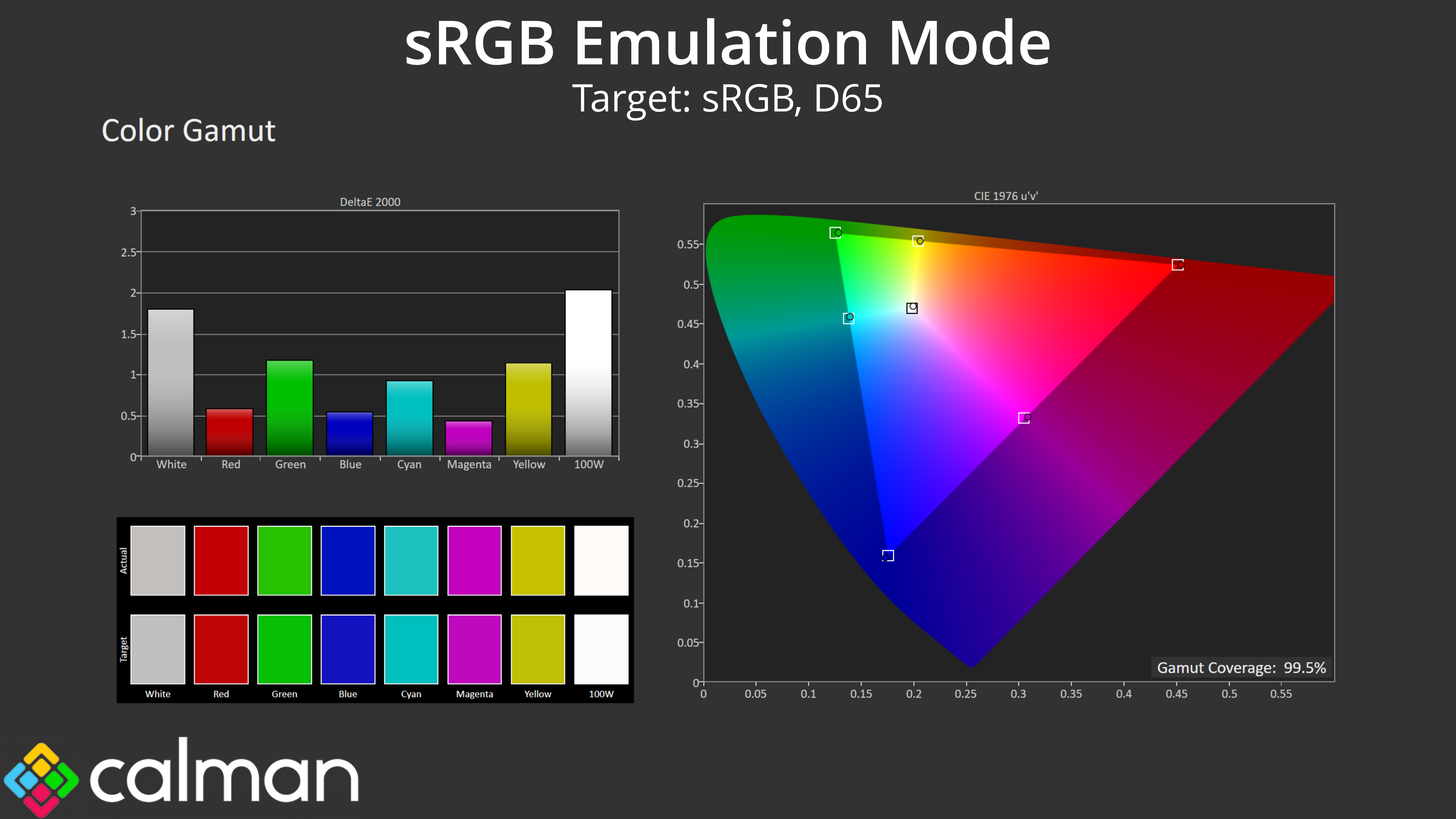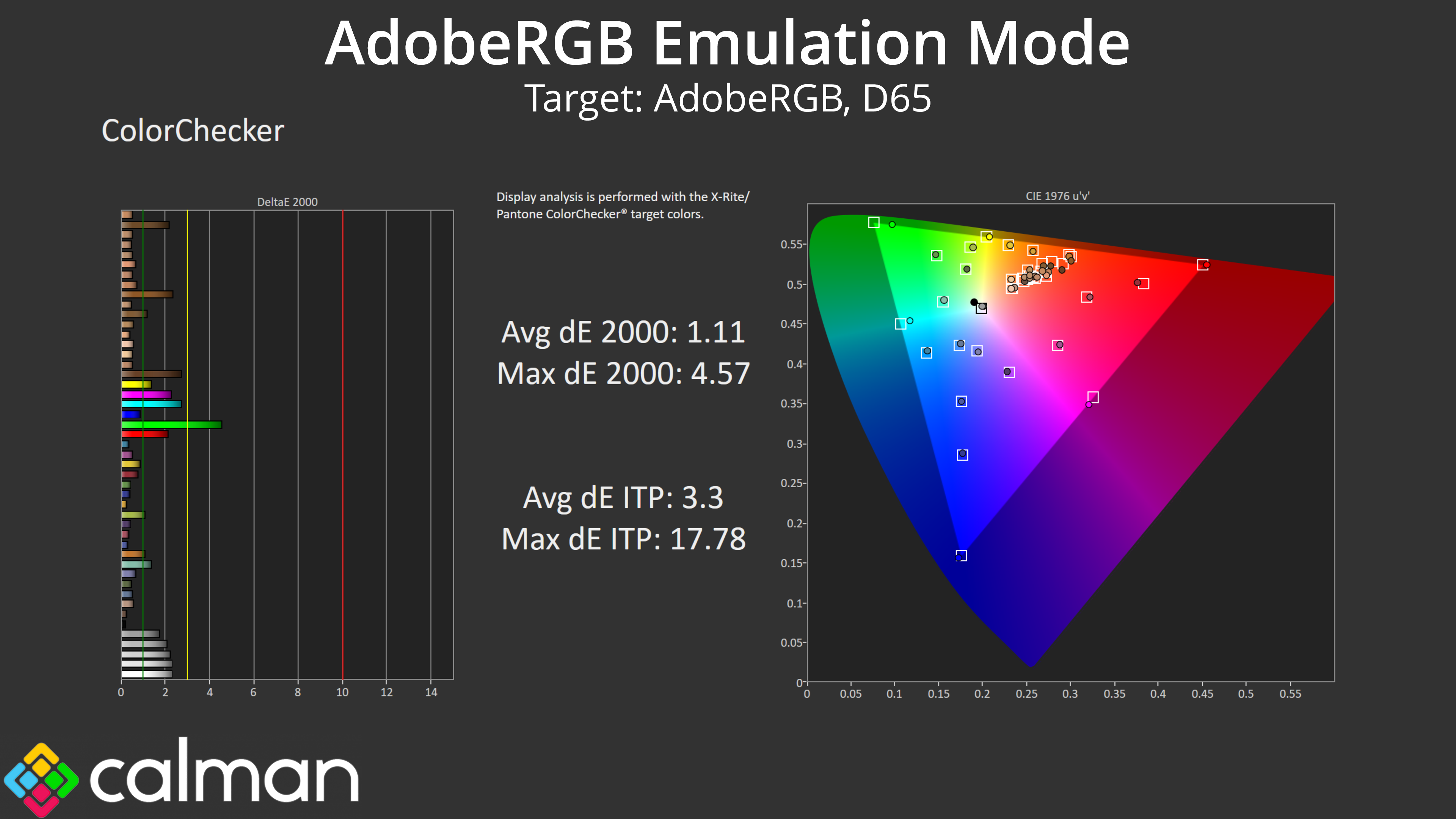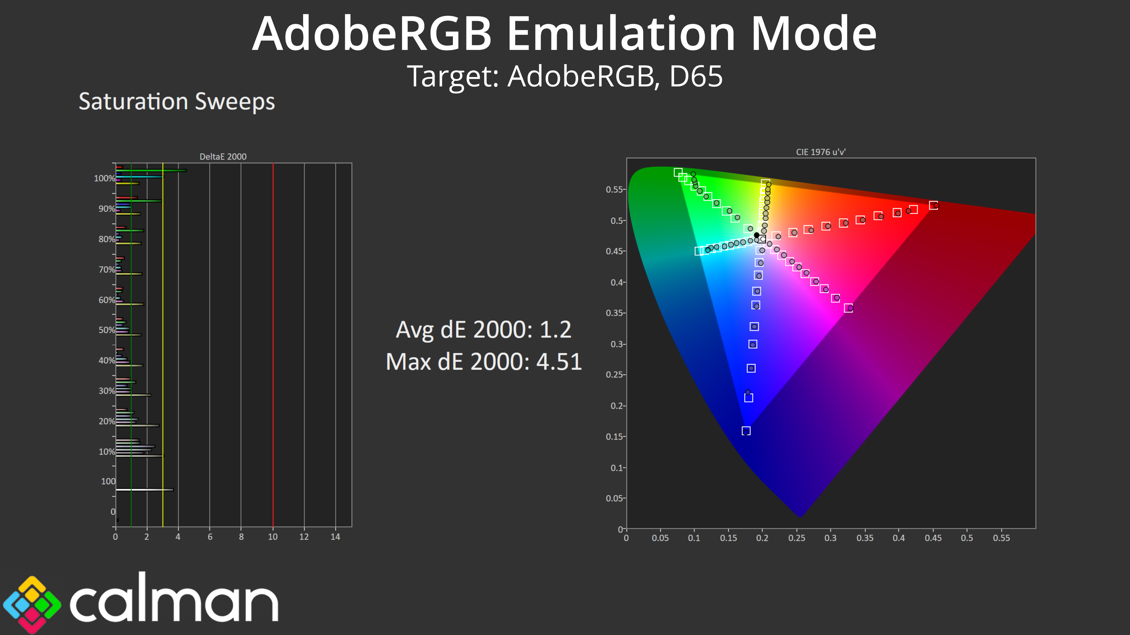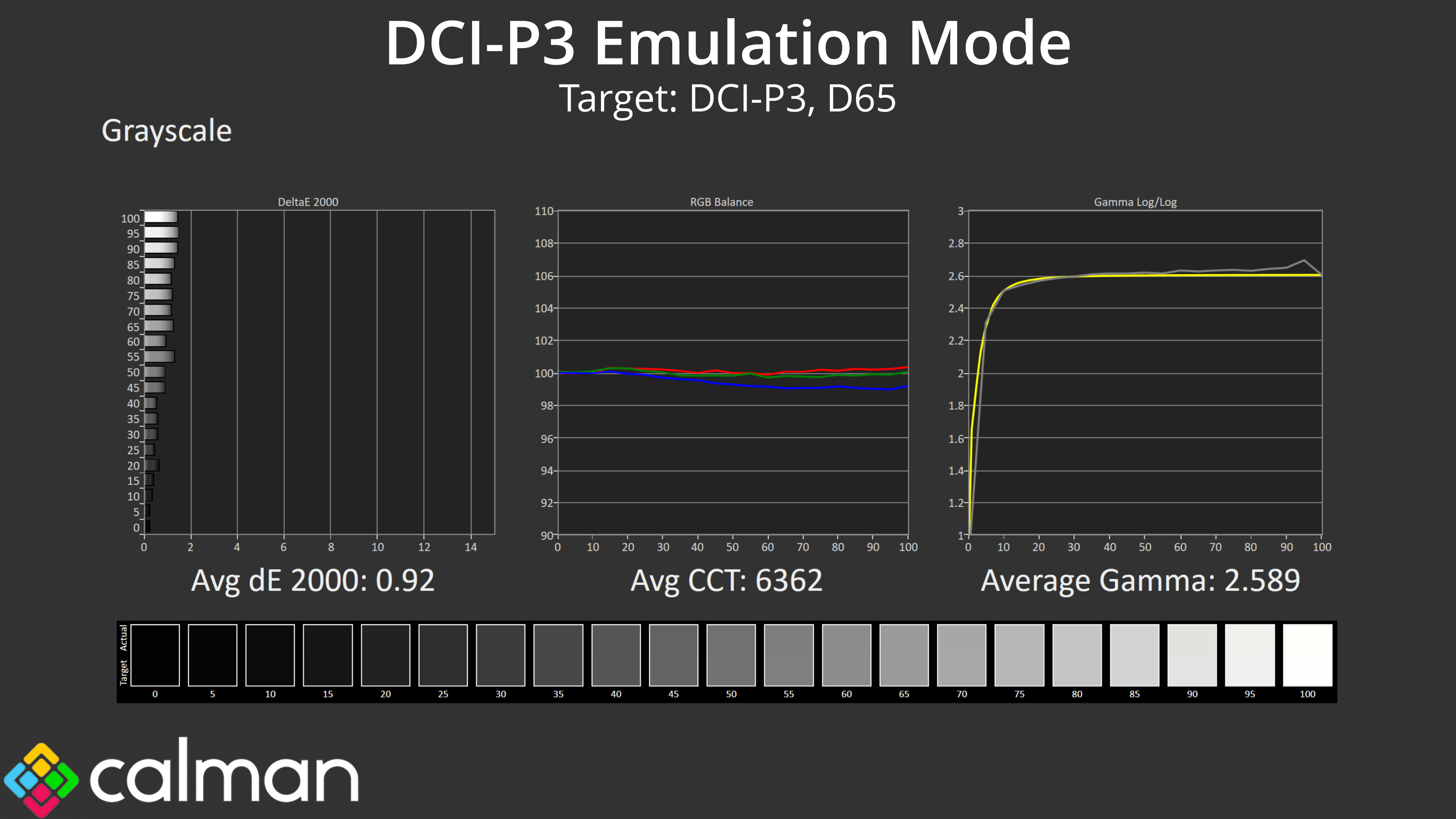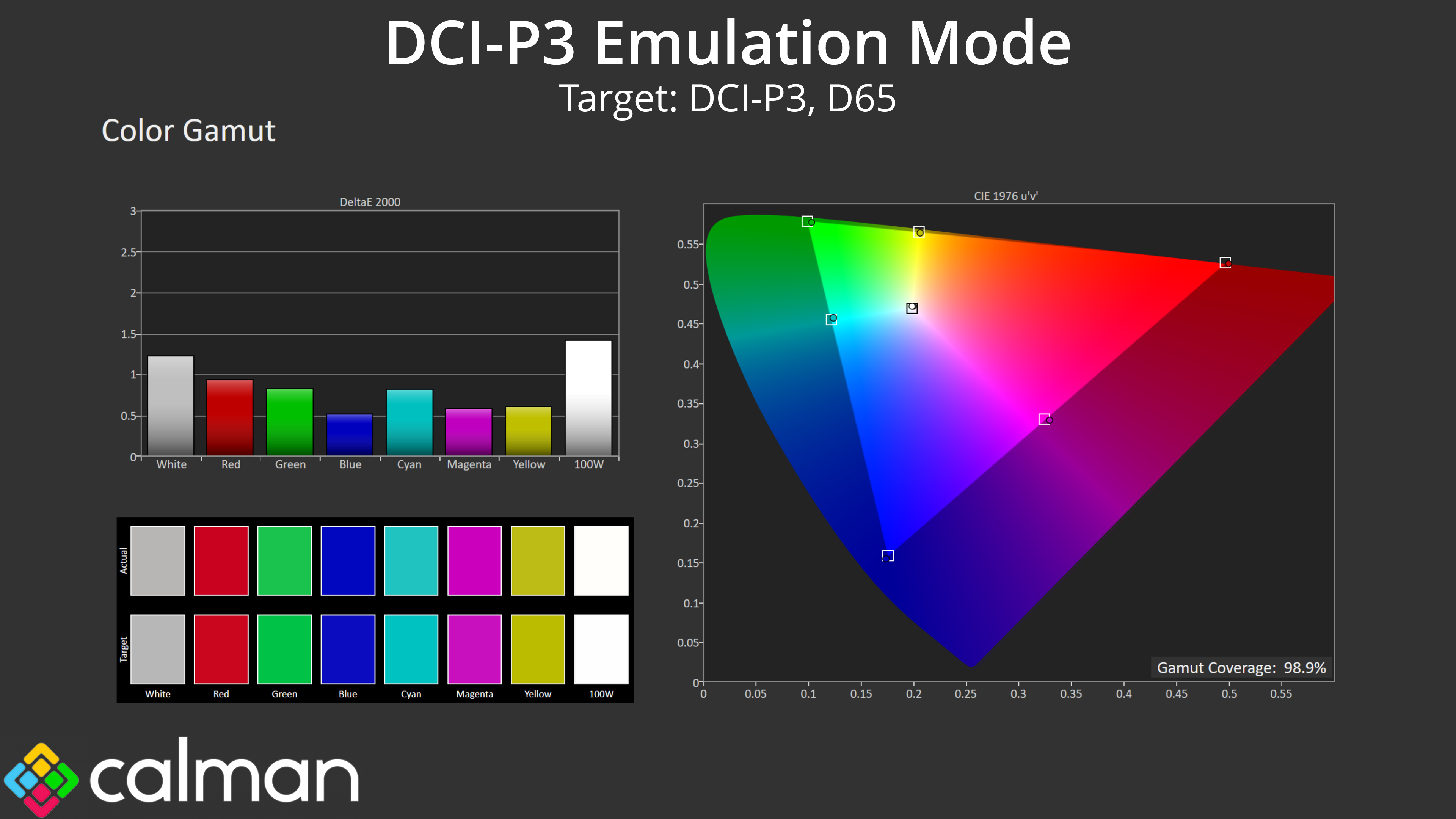 According to Portrait Displays, ‘any error that is smaller than a DeltaE of 1 is generally invisible. It is usually not recommended or useful to continue tweaking settings once all measures are smaller than a DeltaE of 1.' That means the DCI-P3 mode is ready to go for even the most demanding professionals, no tweaking required, and that is highly impressive.