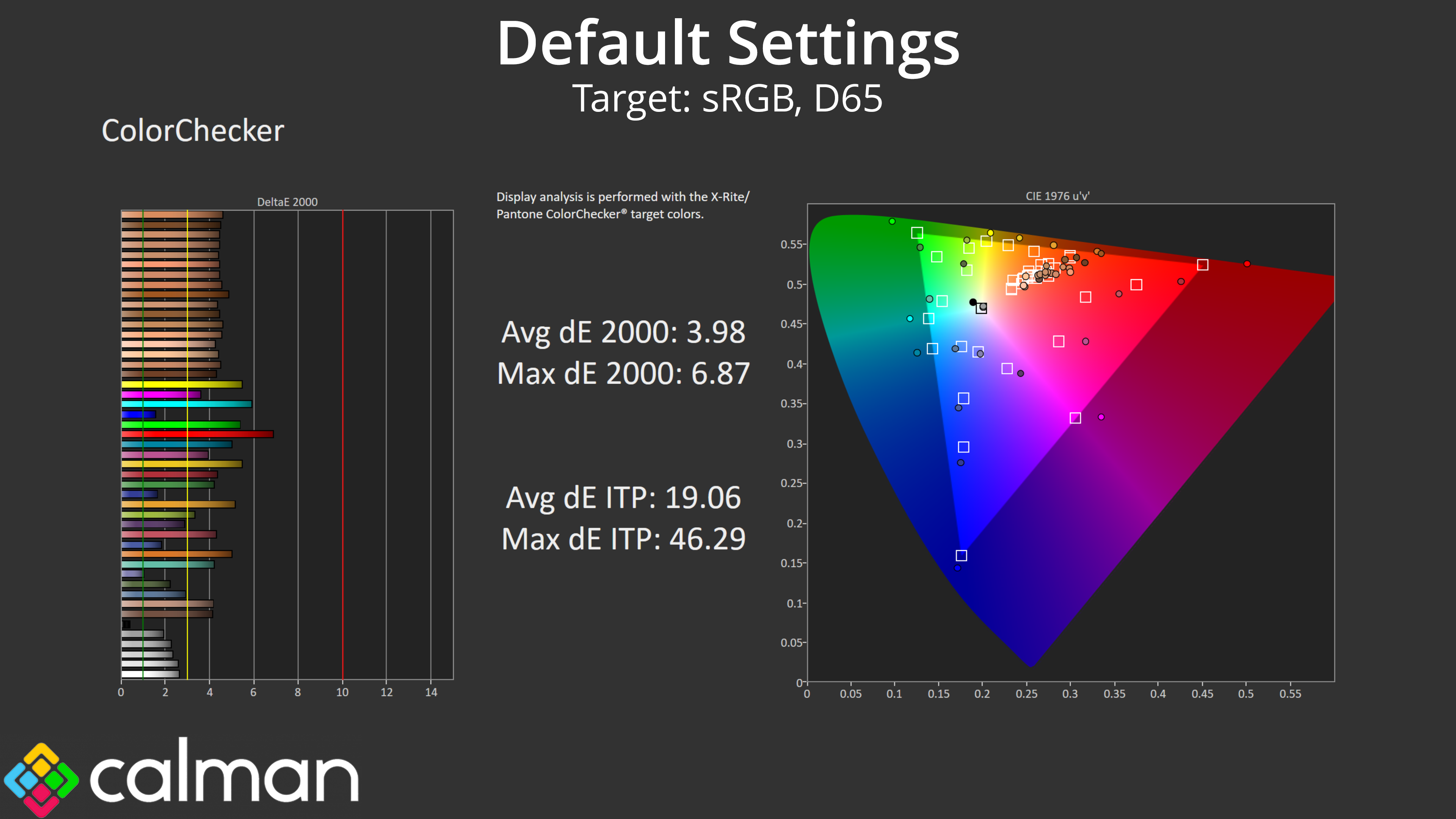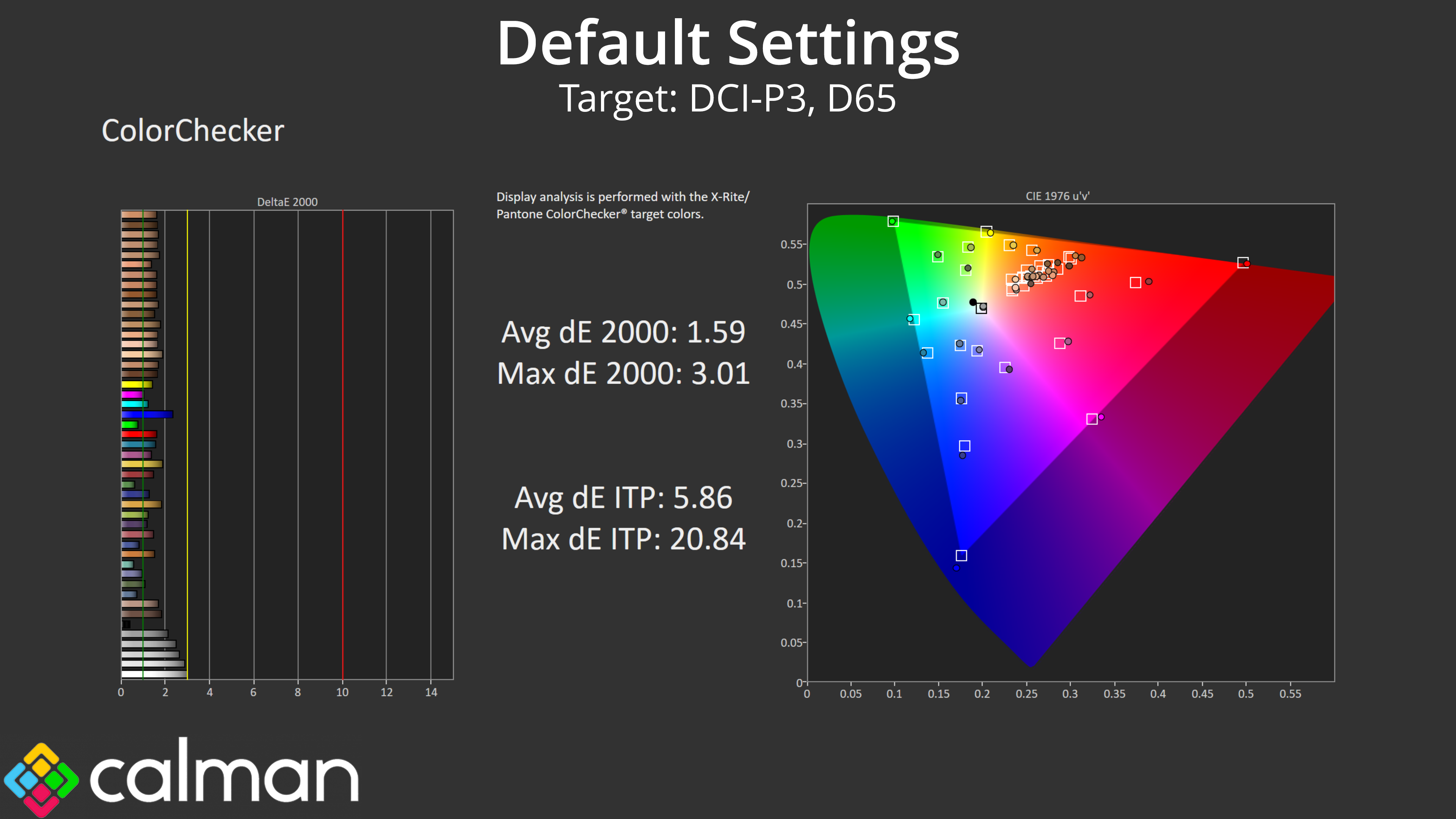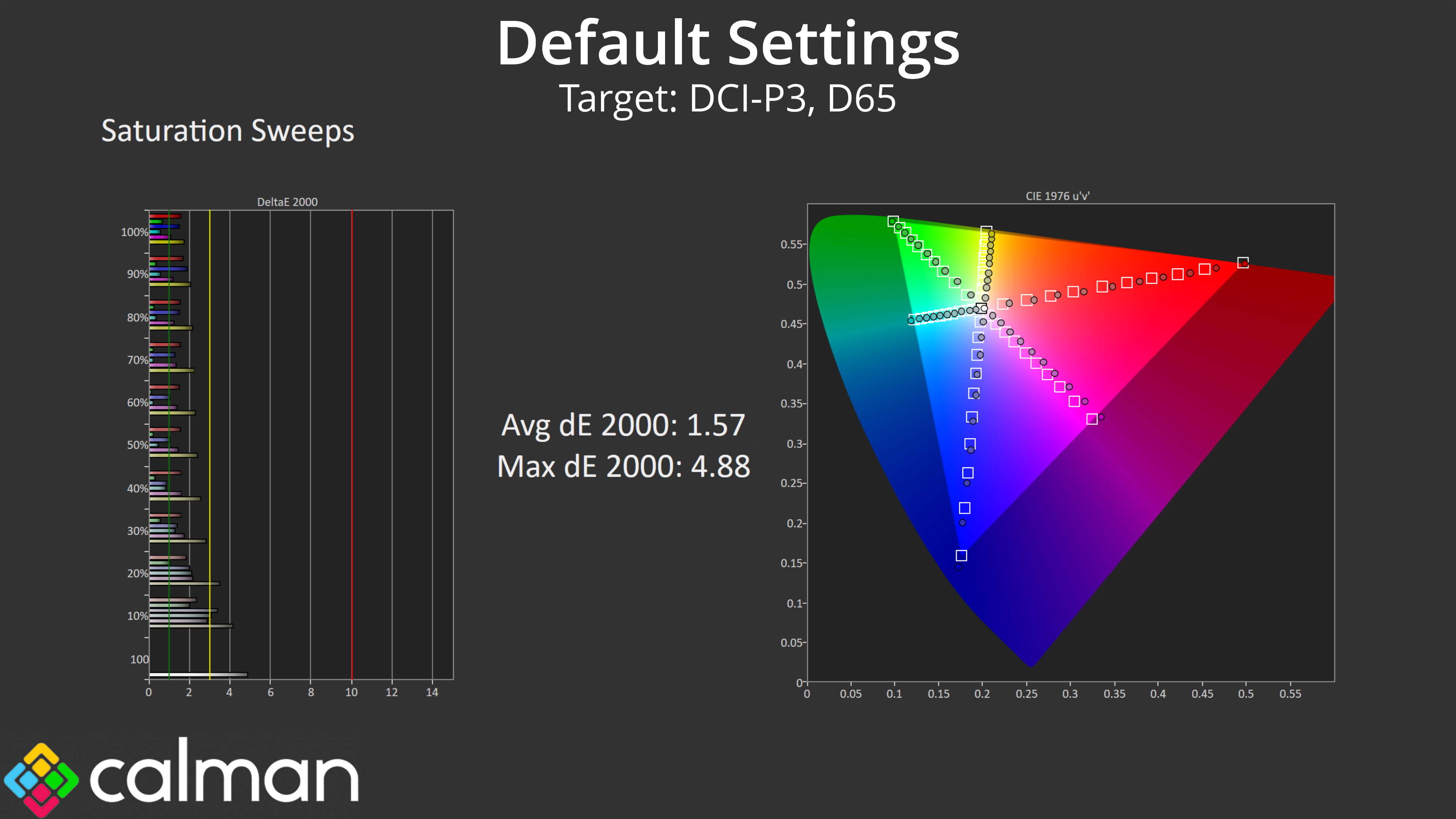Relative to the DCI-P3 space however, things are more accurate with an average dE of 1.57.