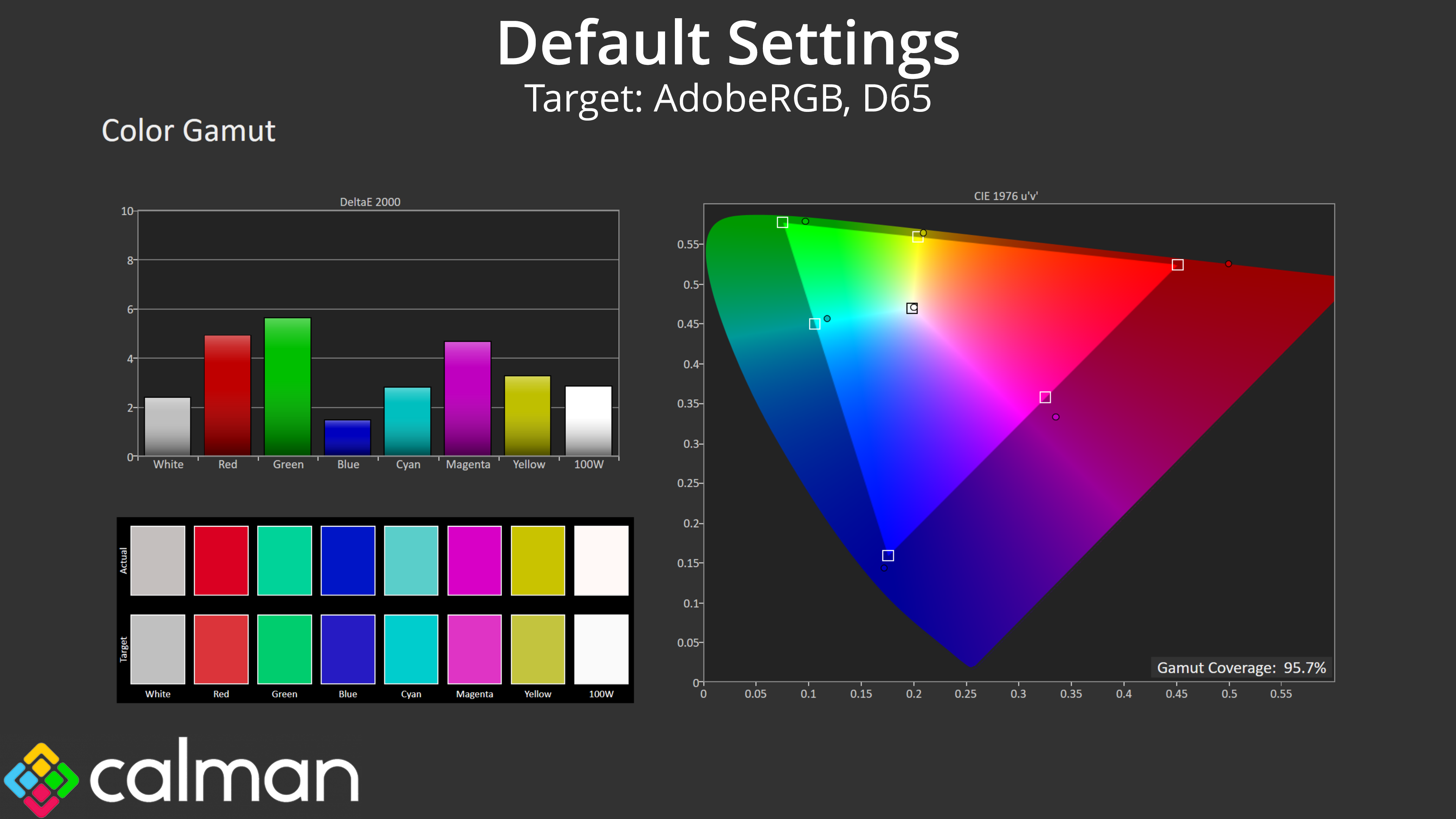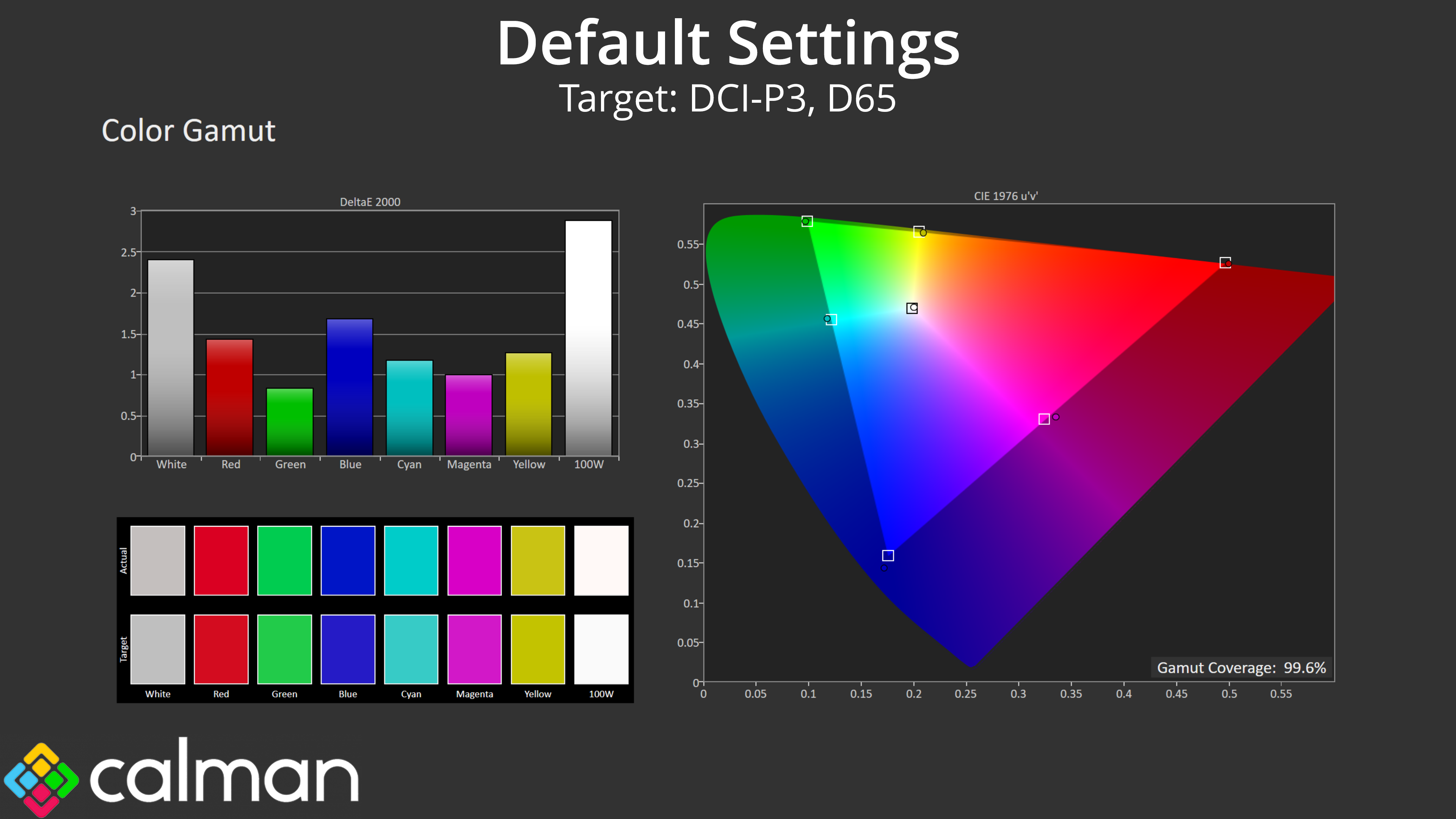 According to Portrait Displays, ‘any error that is smaller than a DeltaE of 1 is generally invisible. It is usually not recommended or useful to continue tweaking settings once all measures are smaller than a DeltaE of 1.' That means the DCI-P3 mode is ready to go for even the most demanding professionals, no tweaking required, and that is highly impressive.