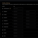 Settings has the most, erm, settings to adjust and it's quite a varied spread. There are basic things like OSD timeout options, but also more advanced features including HDR Preview, which according to ASUS, ‘allows you to preview non-HDR content performance with HDR and HLG mapping'. All of the OLED Care settings can be found here too, along with ASUS Light Sync, an interesting feature which leverages ambient light and backlight sensors to automatically fine-tune gamut and white balance (if you want that). You can also get an overview of the monitor's information and firmware version, or reset everything to factory defaults.