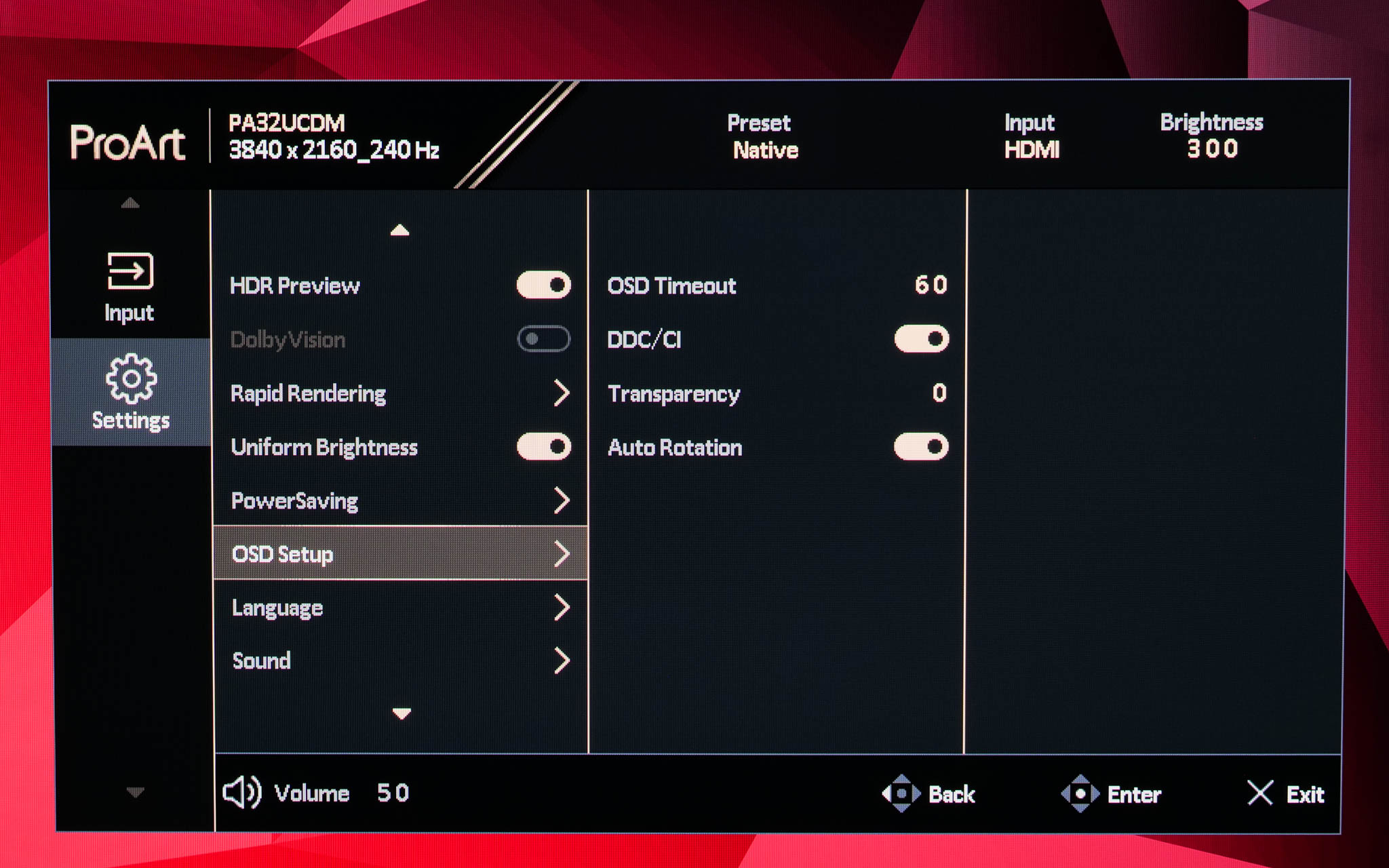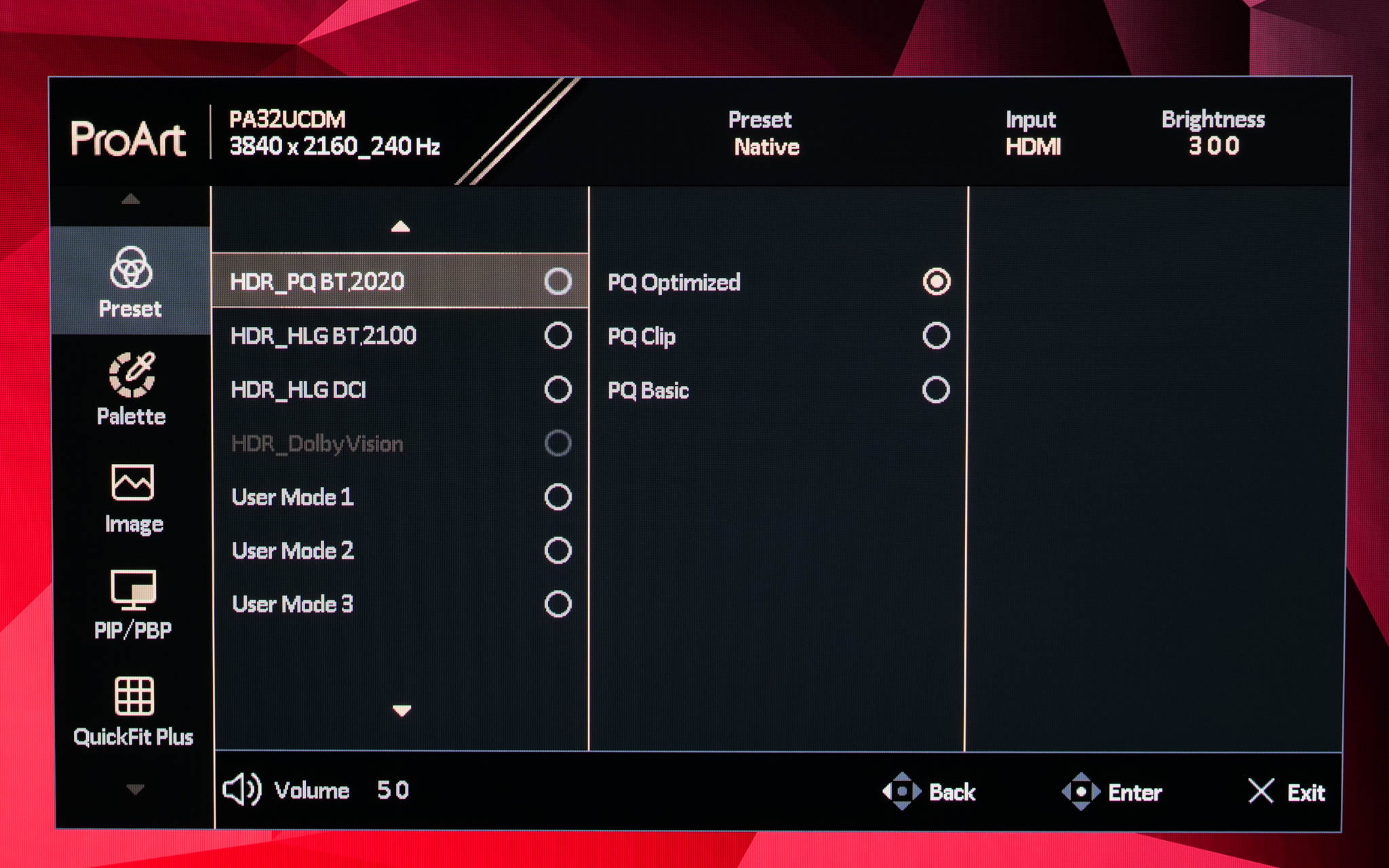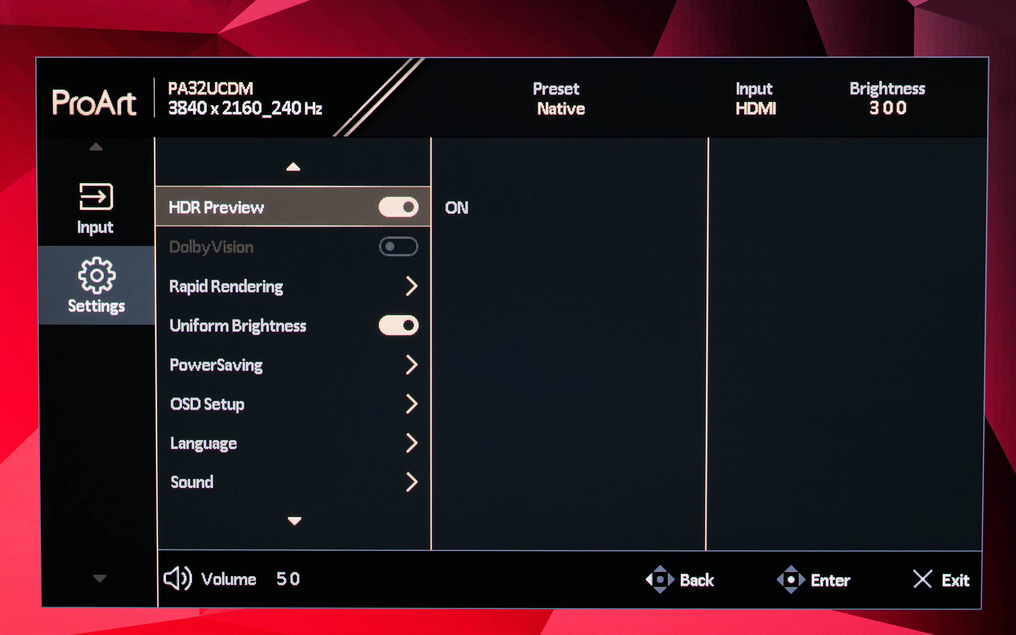 The keen eyed among you may have noticed one tab that was present on the PA27JCV is missing from the PA32UCDM – shortcuts. For the PA27JCV, this let you customise an initial pop-up menu that appeared before the main settings menu itself. This has been removed from the PA32UCDM's OSD system, and I'm not sure why as I find it really useful to be able to quickly adjust things like brightness, change presets etc without having to dig into the main menu. Hopefully that can be remedied with a firmware update.
