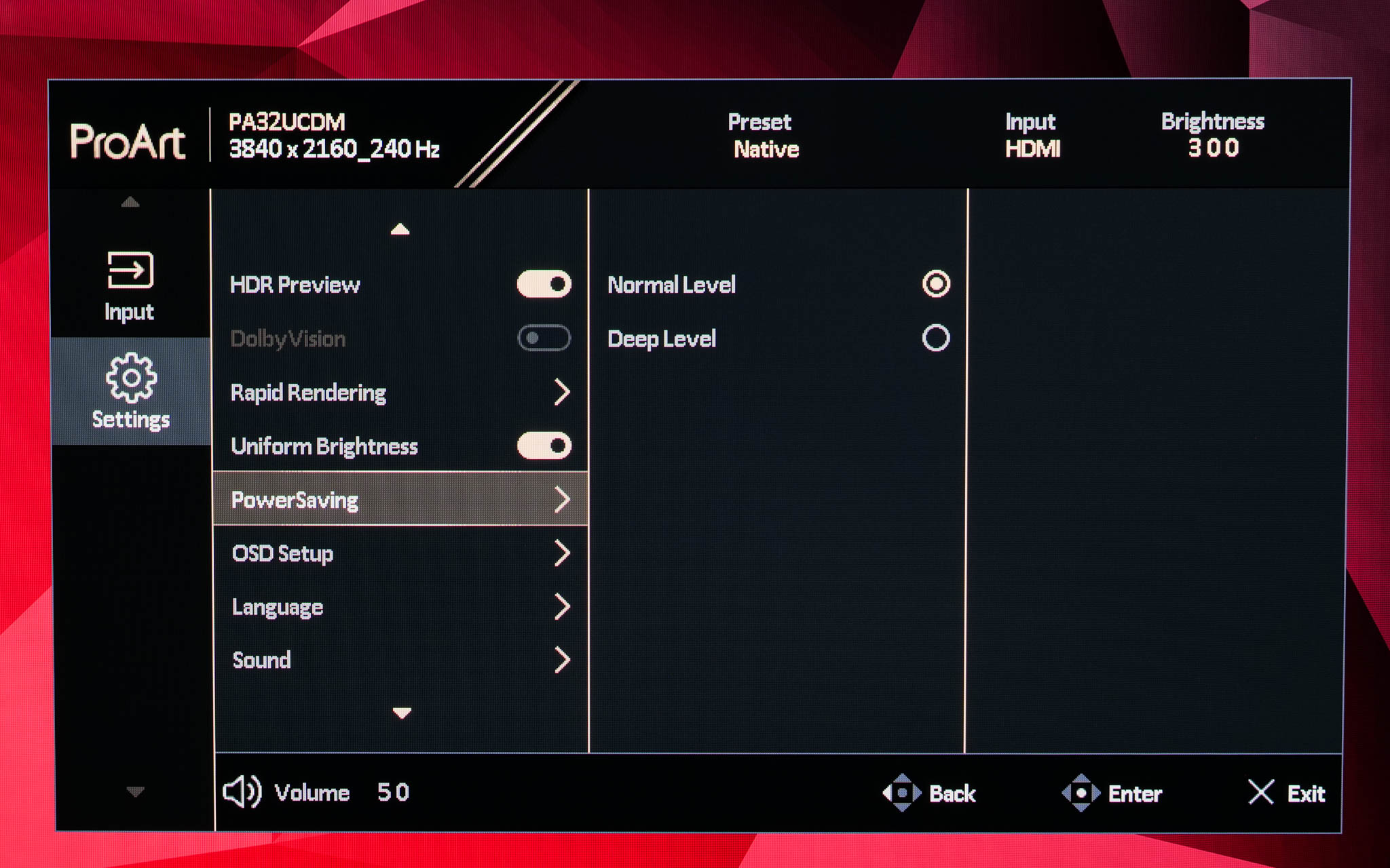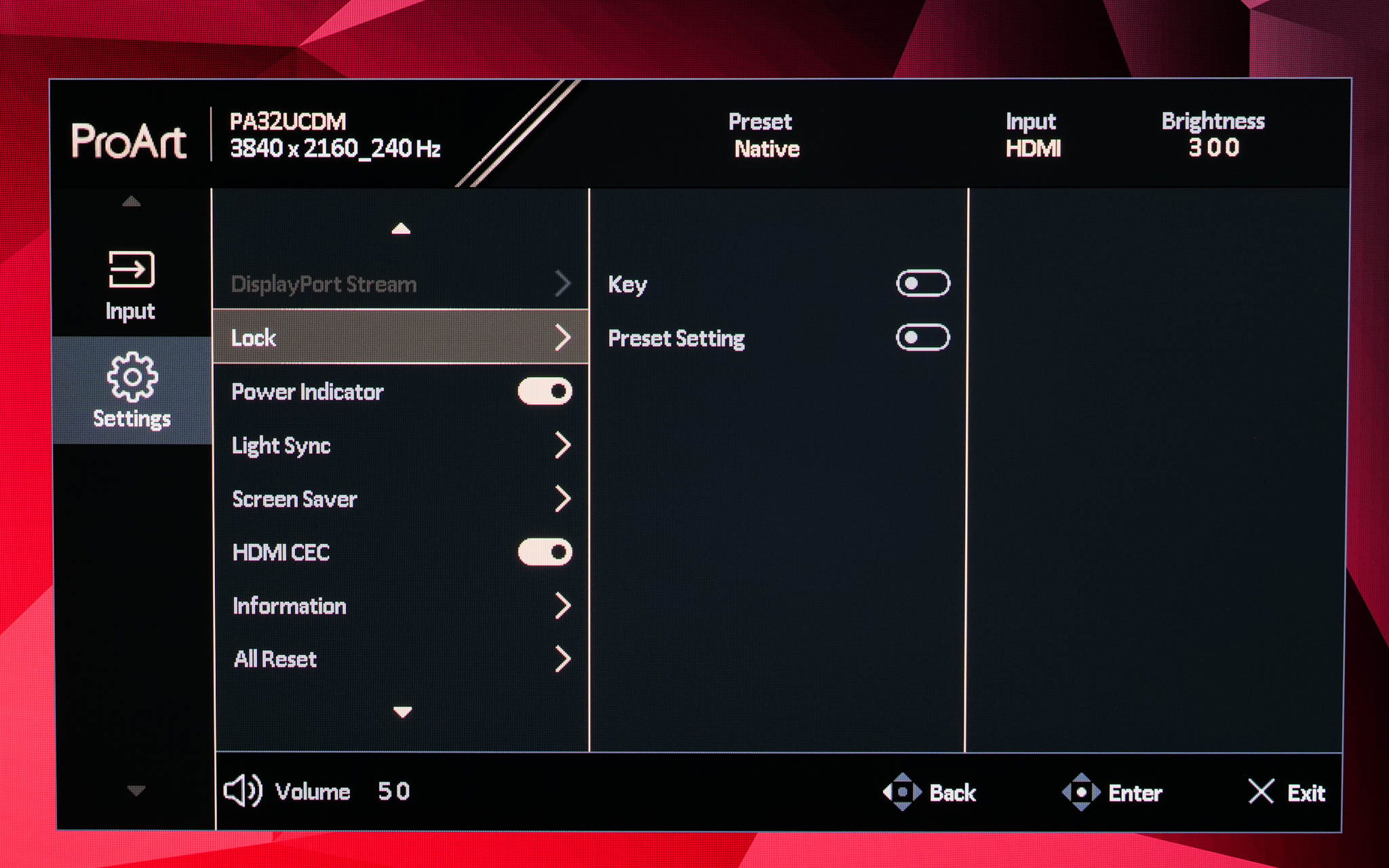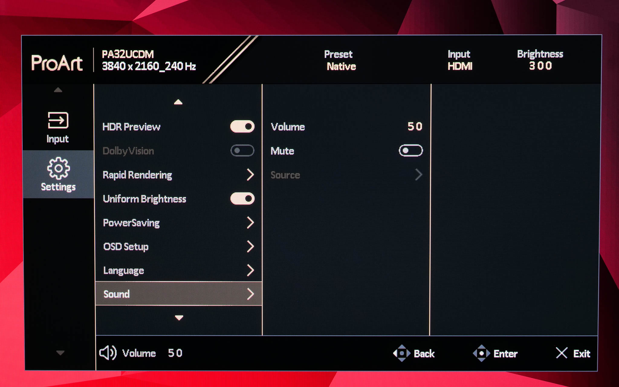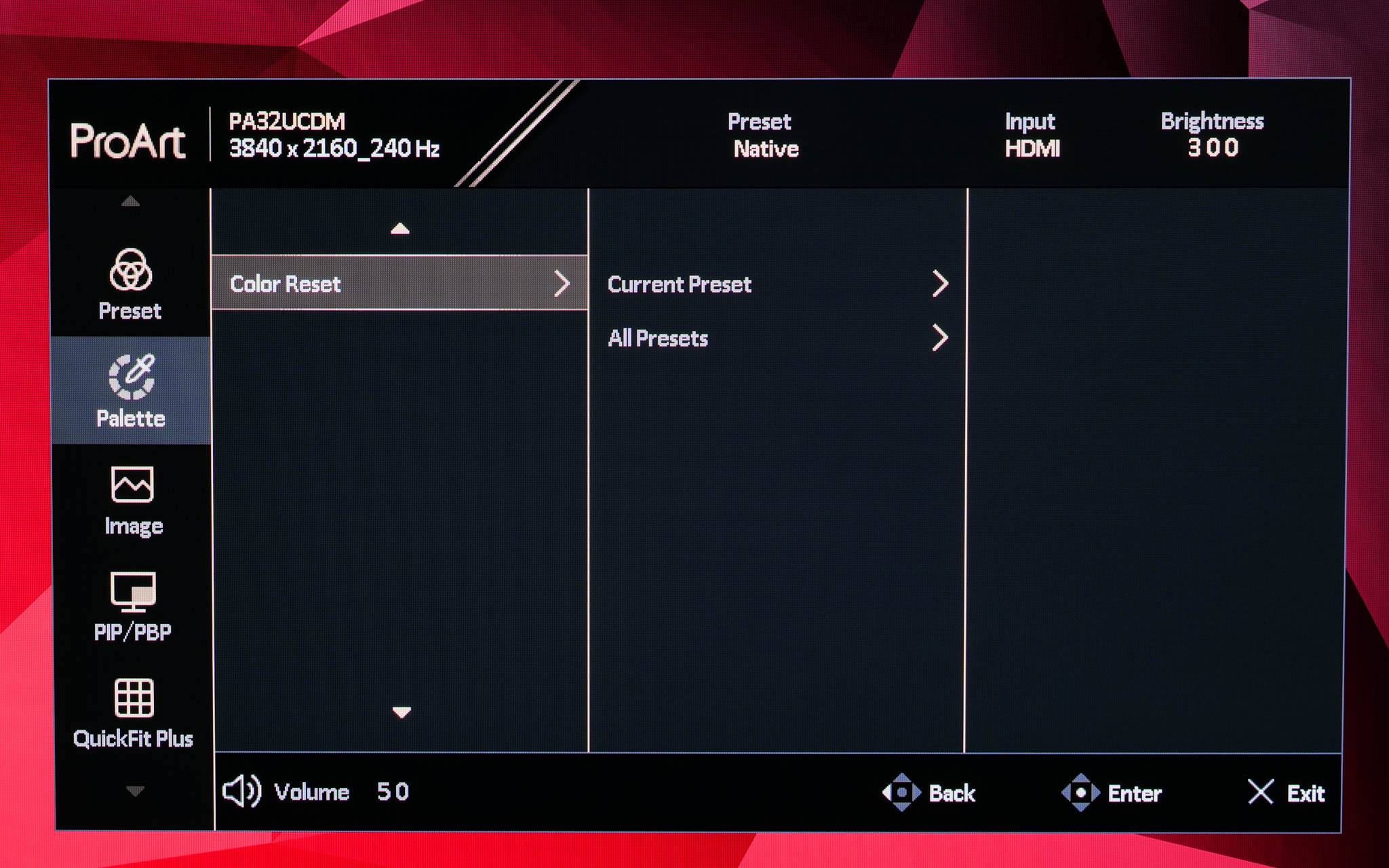 The keen eyed among you may have noticed one tab that was present on the PA27JCV is missing from the PA32UCDM – shortcuts. For the PA27JCV, this let you customise an initial pop-up menu that appeared before the main settings menu itself. This has been removed from the PA32UCDM's OSD system, and I'm not sure why as I find it really useful to be able to quickly adjust things like brightness, change presets etc without having to dig into the main menu. Hopefully that can be remedied with a firmware update.