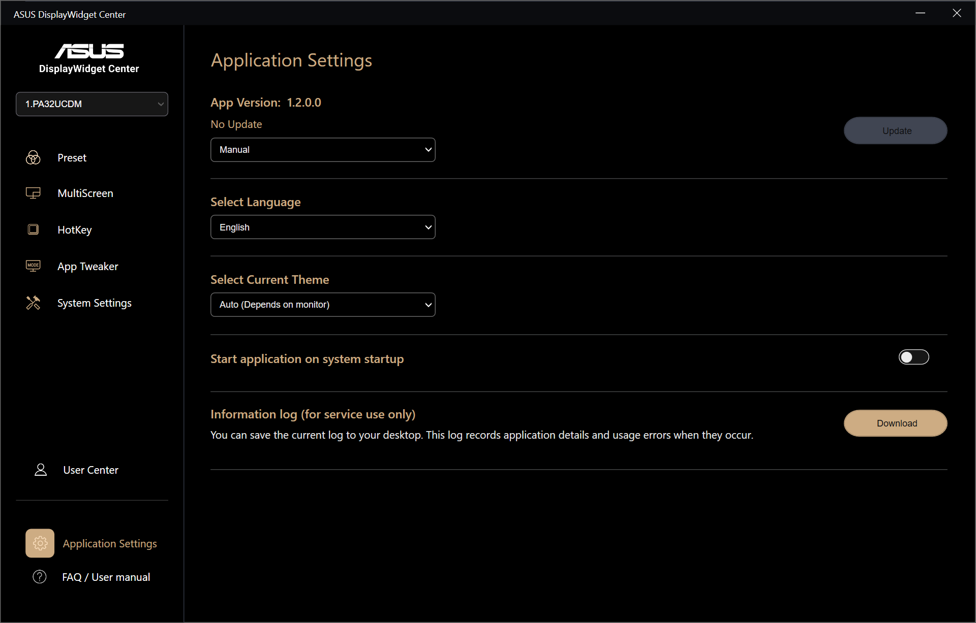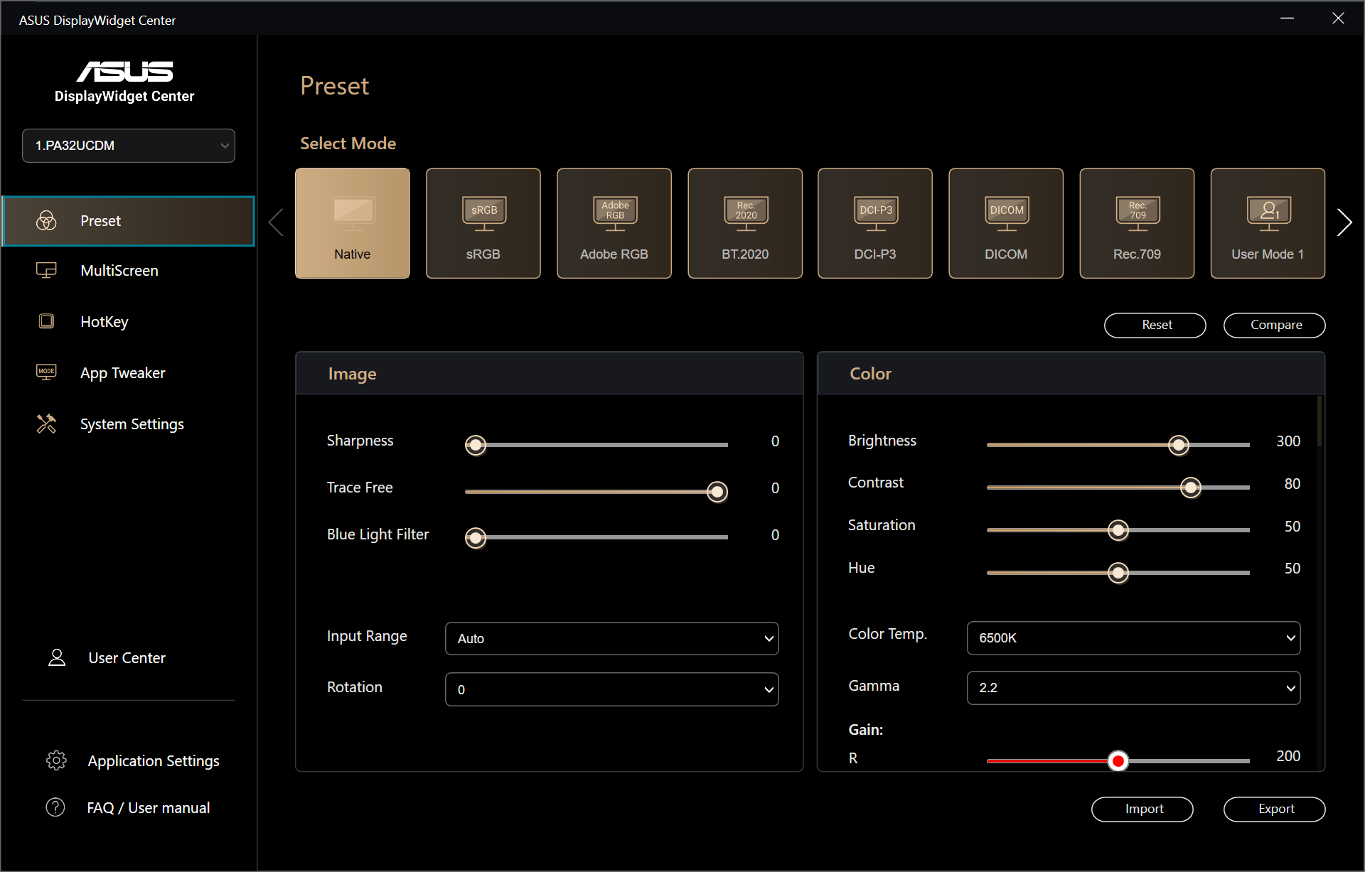 For those interested, ASUS also provides support for its DisplayWidget Center software. This simply gives you control over the key monitor settings from your PC, so you don't have to fiddle with the OSD to quickly adjust brightness or choose a different colour mode.