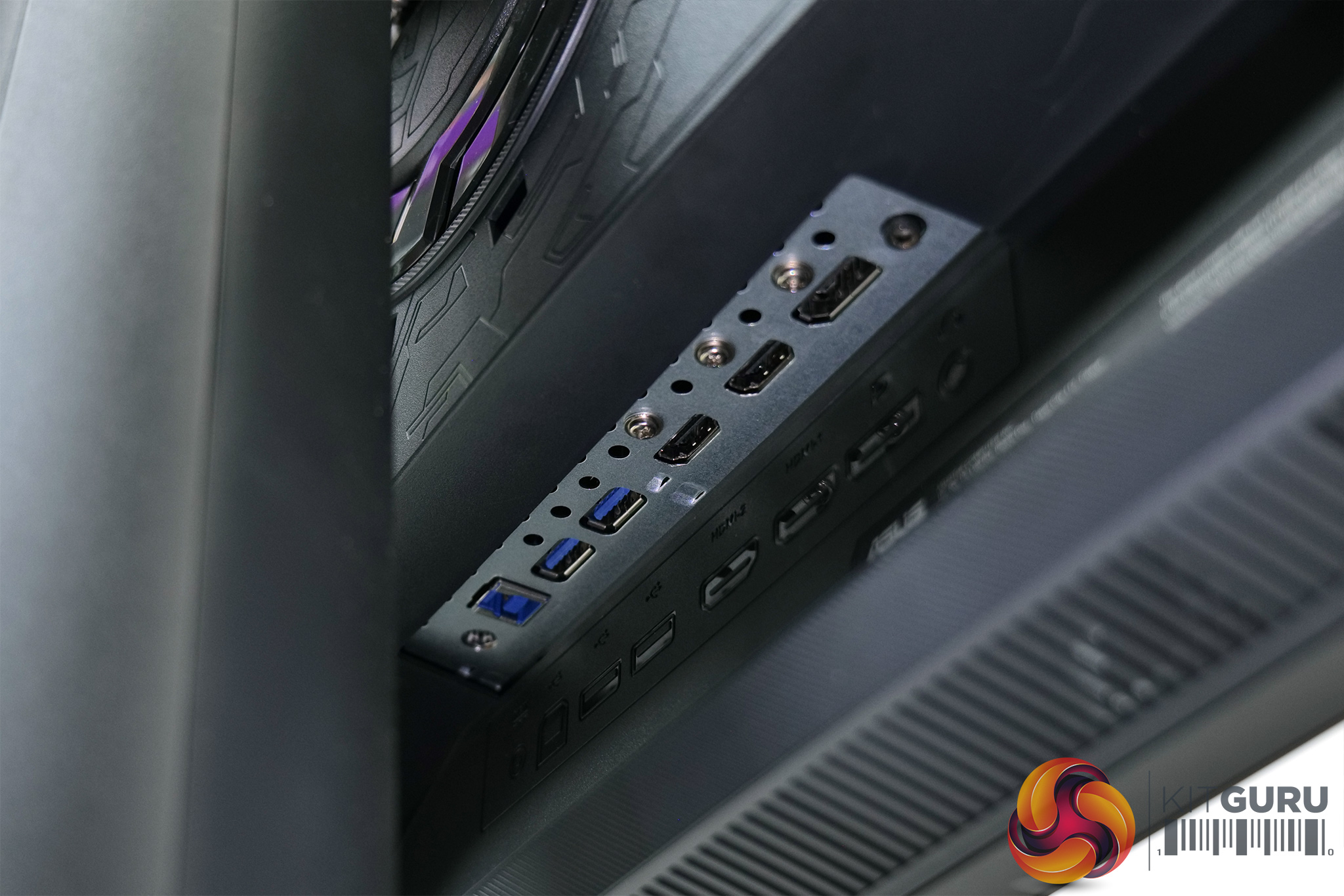 One key benefit to the PG32UQ versus the PG32UQX comes in the form of its I/O. We find 1x DisplayPort 1.4, but crucially, there are two HDMI 2.1 ports – the PG32UQX was sadly limited to HDMI 2.0 connectivity, but this is now corrected with the PG32UQ. Alongside a 3.5mm audio jack, we can also note a two-port USB 3.2 Gen1 hub.