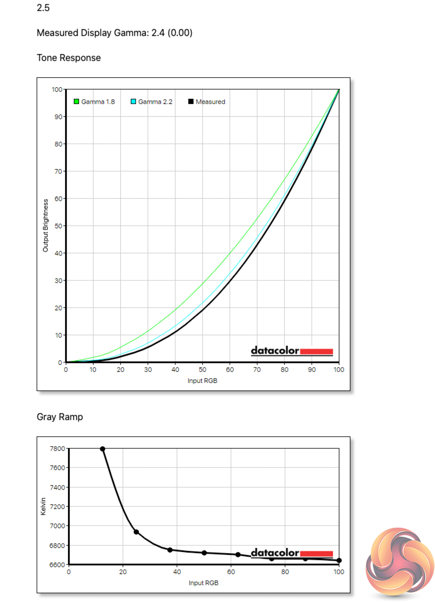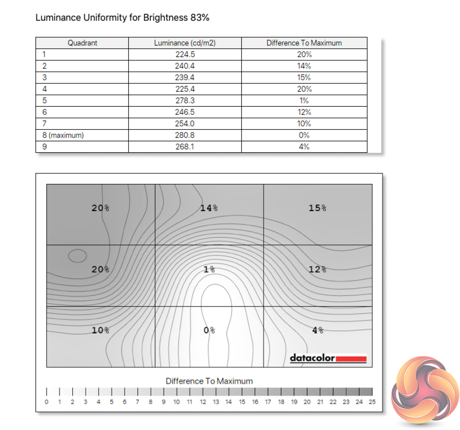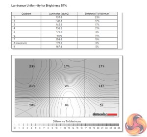 The contrast figure is also quite lacklustre, reporting at 540:1. I've mentioned in a previous review the the SpyderX units can under-report contrast and I believe that is what is happening here. In any case, for an IPS panel contrast is never going to be the greatest.